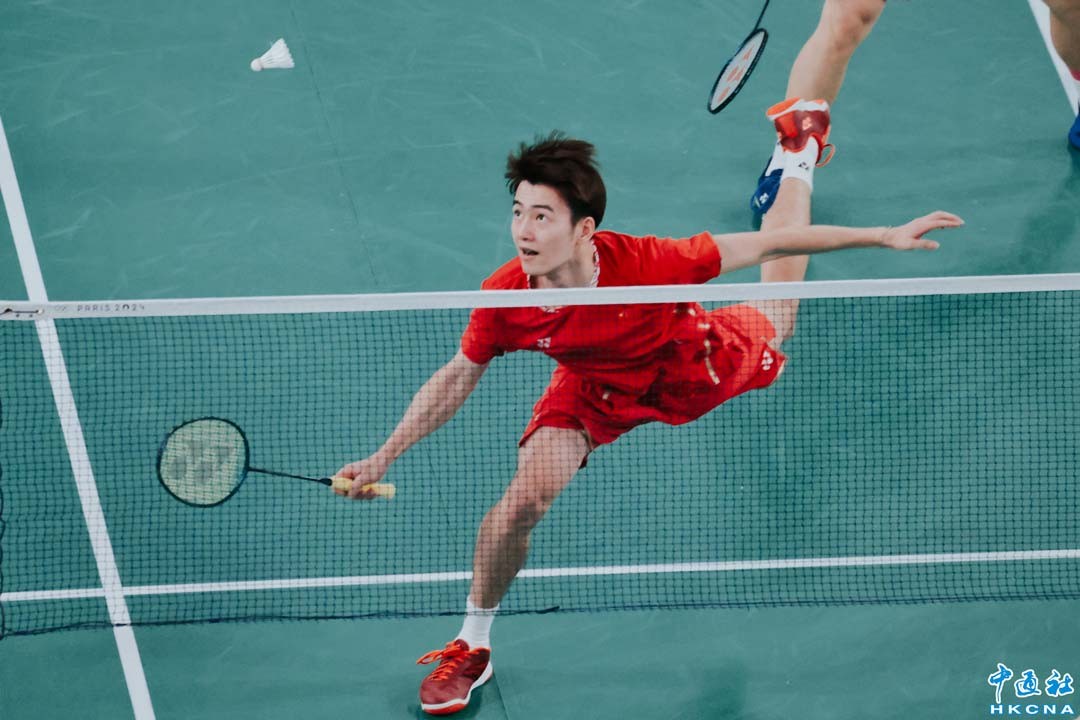 當地時間8月4日,在巴黎奧運會羽毛球男子雙打決賽中,中國組合梁偉鏗/王昶奪得銀牌。(香港中通社記者 謝光磊攝)