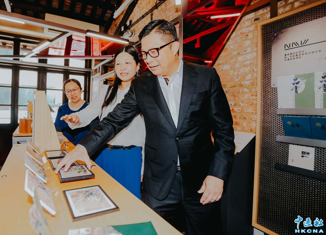 8月7日,香港特區政府保安局局長鄧炳強、保安局常任秘書長李百全、保安局副局長卓孝業、保安局局長新聞秘書黃女傑參觀香港文學舘,並與香港文學舘舘長潘耀明、香港文學舘助理舘長羅光萍等人進行交流。(香港中通社記者 曹文毓攝)