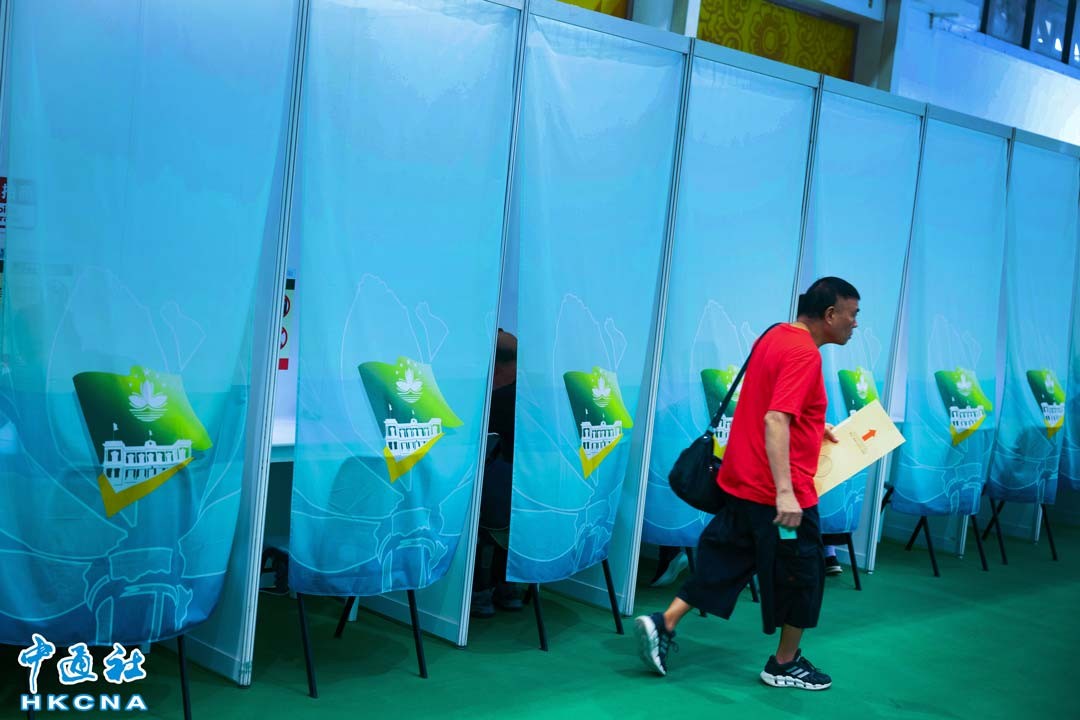 8月11日,投票人在澳門理工大學體育館投票地點。 當日,2024澳門行政長官選舉委員會委員選舉上午九時至傍晚六時舉行,當中來自七個界別的三百四十四席將透過逾六千二百名投票人將票選產生。香港中通社圖片