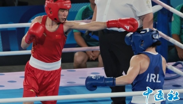 當地時間8月6日,在巴黎奧運會拳擊項目女子60公斤級決賽中,中國選手楊文璐不敵愛爾蘭選手哈靈頓,獲得銀牌。(香港中通社記者 謝光磊攝)
