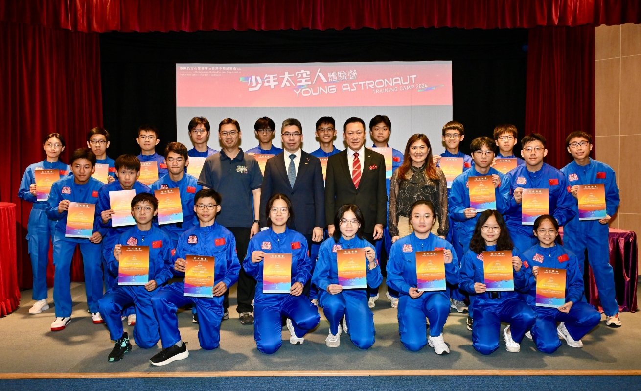圖源:政府新聞處。 “少年太空人體驗營”在2009年首次舉辦,今年已經是第13屆,曾經參與的同學接近400名。今屆的體驗營在5月展開招募時反應熱烈,獲選學員經過3輪甄選,包括天文學和太空科學問答比賽,以及為期3日的營前集訓和面試後,最終從超過200名來自全港約130間中學的申請者中脫穎而出,成為“少年太空人”。 體驗營由康樂及文化事務署(康文署)與香港中華總商會合辦,京港學術交流中心協辦,香港太空館統籌,並由香港中華總商會贊助。有關體驗營詳情,可瀏覽香港太空館網頁,或致電2734 2765查詢。 體驗營是弘揚中華文化系列活動之一。康文署一直積極推廣中國歷史和文化,透過舉辦多元化的節目和活動,讓市民認識博大精深的中華文化,想獲得更多資訊,請瀏覽網頁。(完) 【編輯:譚暢】