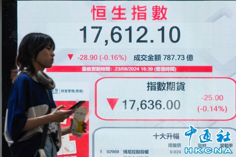 香港中通社8月23日電(記者 譚暢)受美股22日晚急跌影響,港股23日窄幅波動,恒指當日收市報17612點,跌28點或0.2%。大市全日成交僅約787.7億港元。 但恒指全周錄得升幅,本周升181點或1%,是第三周連升。