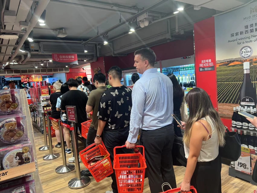 香港新聞網9月5日電(記者 張明臻)香港天文台5日傍晚6時20分掛出八號風球,市民下班後除了到超市掃貨,也抓緊時間點外賣。記者實測發現,Foodpanda和Deliveroo都已經暫停下單,美團旗下的Keeta還能下單送到家。 天文台預告“摩羯”是超強颱風,市民提高警惕。在港島灣仔區,不少餐廳早早關門,在玻璃窗上貼上膠布。環衛工人打掃被狂風吹下的落葉,有的打工仔湧入超市排隊買菜結帳。
