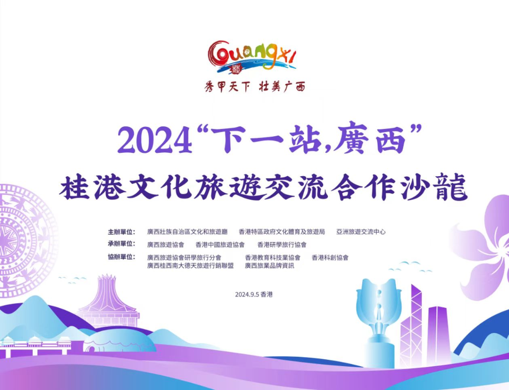 2024“下一站,廣西”桂港文化旅遊交流合作沙龍在香港舉辦香港新聞網9月6日電 9月5日,由廣西壯族自治區文化和旅遊廳、香港特區政府文化體育及旅遊局、亞洲旅遊交流中心聯合主辦的2024“下一站,廣西”桂港文化旅遊交流合作沙龍在香港舉行。