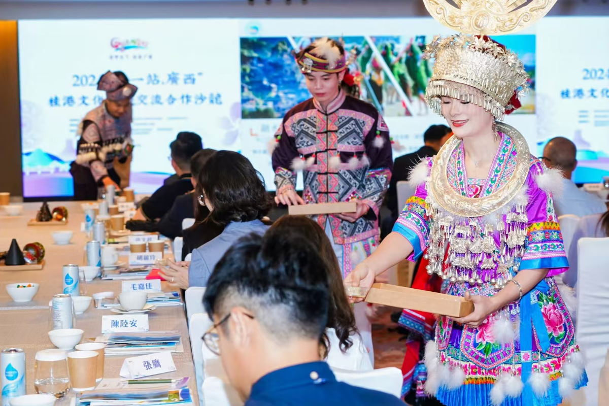 廣西壯族自治區文化和旅遊廳黨組成員、副廳長班華勤,香港特區政府文化體育及旅遊局局長政治助理招文亮,香港特別行政區立法會議員朱國強,香港特別行政區區議會議員、青年文化旅遊董事王文,亞洲旅遊交流中心主任助理程瑞山出席活動。香港中國旅遊協會、香港研學旅行協會、香港文旅企業主要負責人、香港教育行業代表,廣西文旅企業代表,及新聞媒體等六十多人參加沙龍活動,雙方圍繞秋冬季文旅市場、研學旅遊主題線路產品等進行深入交流。 本次活動旨在深入貫徹落實把廣西打造成為粵港澳大灣區重要戰略腹地的重要指示精神,落實自治區黨委書記劉寧率廣西代表團訪問港澳工作成果,扎實推進桂港旅遊合作協議落地生效,推進桂港旅遊企業務實合作,為加快“一區兩地一園一通道”建設作出積極貢獻。 班華勤在致辭中表示,近年來,廣西聚焦打造世界旅遊目的地,推動全區旅遊景點景區“串珠成鏈”,形成文旅消費新場景,為桂港旅遊業界開展線路開發、市場推廣、研學旅遊等提供了良好機遇。本次活動注重時效性,採取了別出心裁的交流沙龍形式,讓廣西文旅企業帶著產品來到香港,與香港文旅企業開展深入務實交流合作,希望雙方企業發揮好桂港便捷的交通優勢、互補的資源優勢,加強溝通、提前佈局,共同助推桂港青少年研學旅遊市場發展,形成遊客互送、互利共贏的新局面,打造桂港合作新的熱點和增長點。 朱國強在致辭中說,廣西自然風光秀麗,向來都是香港遊客的熱門旅遊目的地,也是香港青少年赴內地研學旅遊的目的地之一。香港青年前往廣西研學旅遊,不僅能領略到壯美山水風光,明白生態環境保護的重要性,也能瞭解到少數民族的生活與風俗習慣,對於國家團結有更深切的認識。他相信通過本次交流活動將為兩地文旅企業帶來更多的合作機遇,築起桂港兩地文旅與教育合作的橋樑。 一盞六堡茶,萬裏尚為鄰。活動在廣西六堡茶文化鑒賞中拉開帷幕。廣西六堡茶與香港結緣由來已久,茶船古道就是通過香港走向世界。港澳地區因此成為六堡茶的一個主要消費市場,一度占到黑茶消費量的七成,以六堡茶開啟桂港文化旅遊交流沙龍,成為本次活動的一大亮點。現場嘉賓在品味香茶的同時,還欣賞了廣西非遺侗族琵琶彈唱《天星明月》與古箏演奏《山歌好比春江水》,來自廣西的侗族小夥用侗笛即興演奏《東方之珠》將氛圍推向高潮,現場掌聲不斷。
