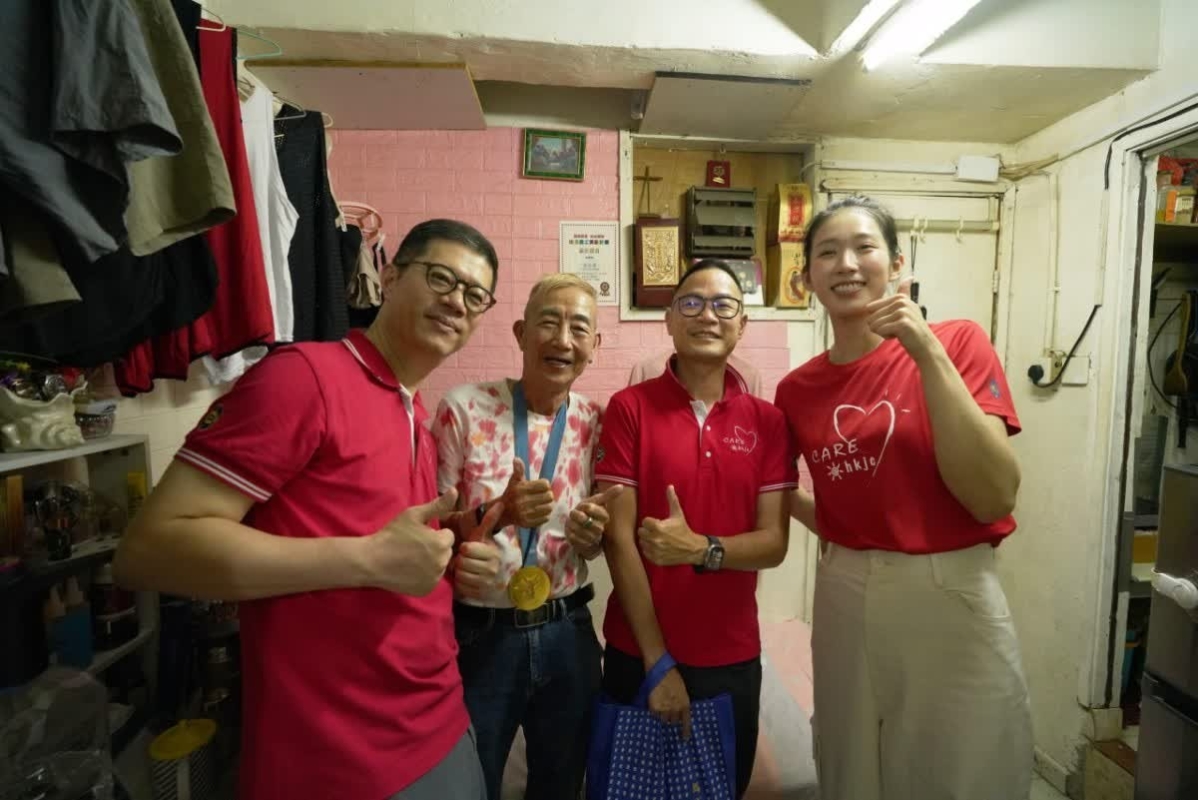 香港新聞網9月15日電 香港巴黎奧運女子個人重劍金牌得主、有“微笑劍后”之稱的江旻憓,入職賽馬會後首次參與馬會義工隊活動。超過200名義工周末到深水埗探訪長者及派發福袋,江旻憓向長者展示於奧運贏得的金牌,更讓老友記親身戴上金牌。