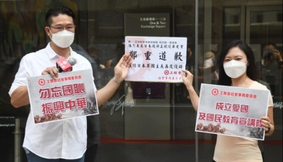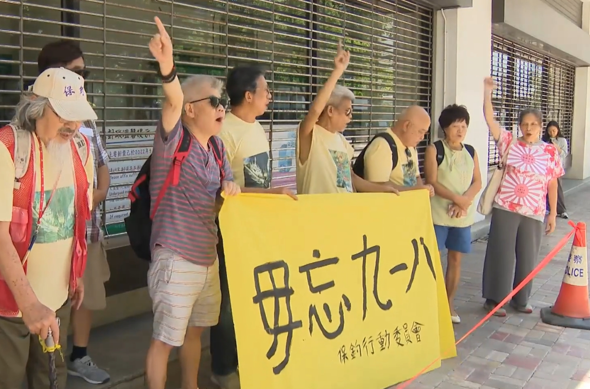 保釣行動委員會多名成員由中環郵政總局出發,前往日本駐港總領事館。成員手持“毋忘九一八”字樣條幅,在現場高喊口號并讀出抗議信內容,要求日本就發動侵華戰爭道歉及賠償,以史為鑒,警惕軍國主義。