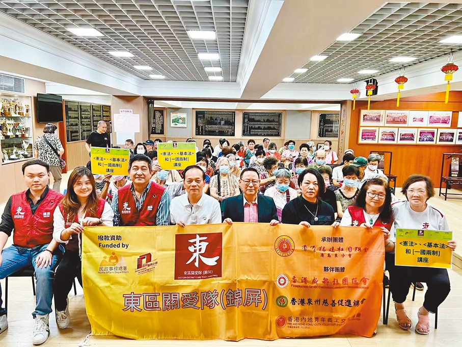 香港新聞網9月21日電 東區錦屏街關愛隊20日舉辦“憲法、基本法和‘一國兩制’”講座,副隊長莊樹煌主持,約200名市民參加。全國港澳研究會理事、香港基本法教育協會副會長傅健慈以“香港基本法與香港治理現代化”作專題演講,闡述國家憲法與香港基本法在維護國家安全、鞏固營商環境、維護司法公正和法治精神方面的作用,分析香港當前的發展形勢。