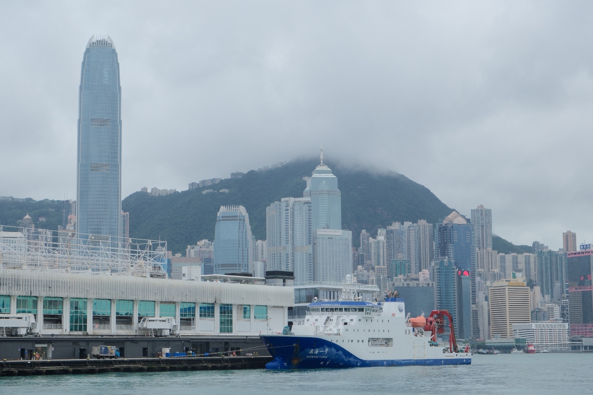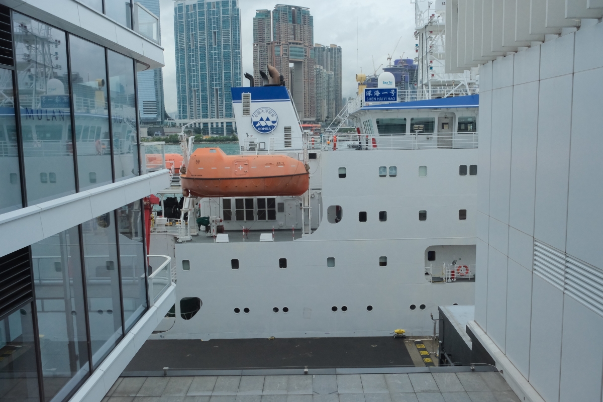 中國科研考察船“深海一號”攜“蛟龍號”載人潛水艇抵達香港尖沙咀海運碼頭