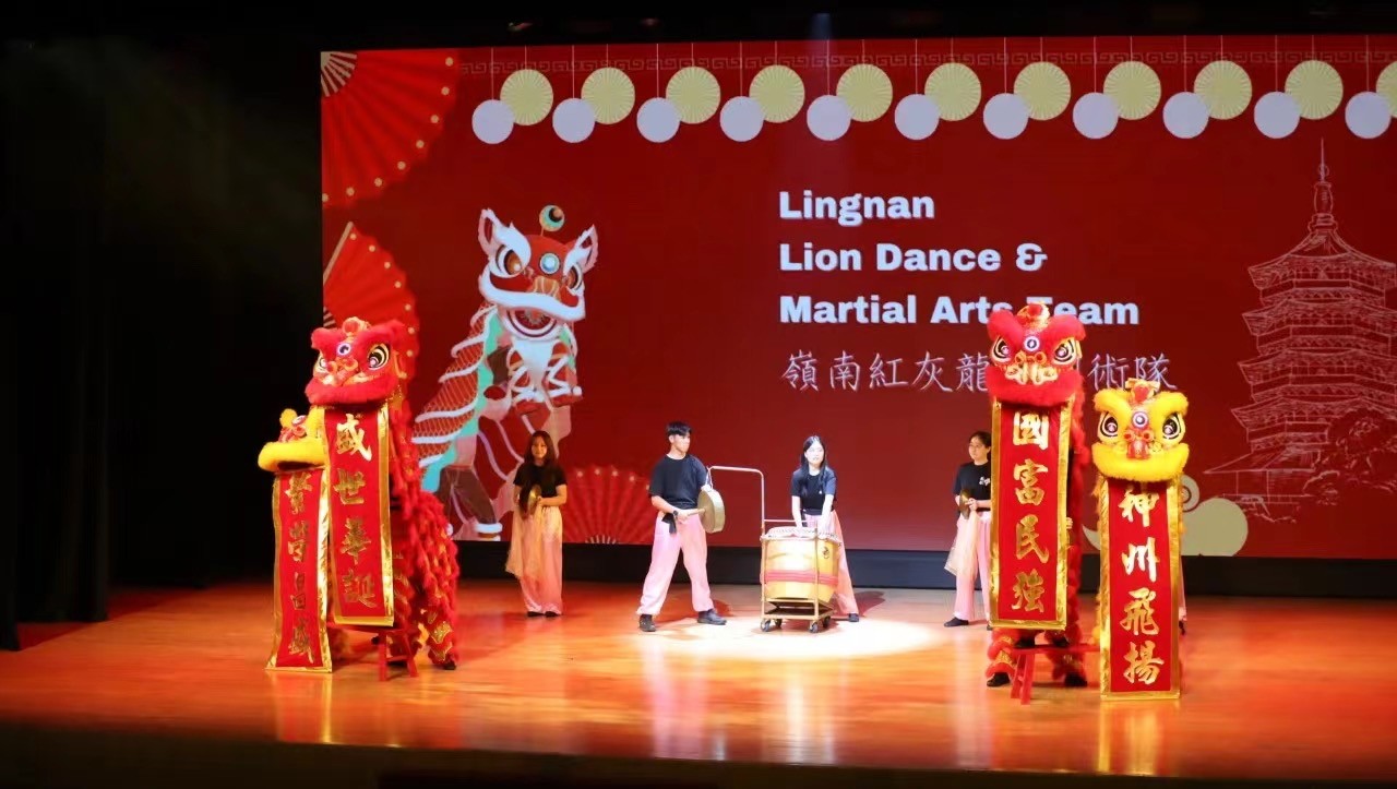 嶺南大學龍獅隊帶來的舞獅表演拉開了晚會的序幕,當四隻獅子高高躍起展開四卷祝福辭“繁榮昌盛”、“盛世華誕”、“神州飛揚”、“國富民強”的時候,現場響起了熱烈的掌聲,這也是在場所有師生及觀眾對祖國母親的共同祝願。晚會的第一個篇章“大國華章”,用豐富多彩的節目展現泱泱中華的文化底蘊。中國舞《今朝》、《醉太平》,漢服朝代復原風格秀《國韻華章》,樂器合奏《我的祖國》,歌舞《赤伶》,融合中國武術與舞蹈的《劍器行》,帶領現場觀眾遨遊在中華文化的歷史長河中。 晚會的第二個篇章“共創未來”,展現青年大學生的青春風采與無窮創意。節目融合了《麒麟》與《華夏》的中式說唱,還有體現潮流與朝氣的“街舞對決”表演,無不令人眼前一亮。情景朗誦《奮進新時代·追憶與展望》的娓娓講述,《如願》優美旋律的悄然奏響,仿佛隔著時空向先輩們致意與傳承。《紫荊花盛開》裡的香港場景,《隱形的翅膀》、《嚮往》、《揮著翅膀的女孩》、《蝸牛》、《喜歡你》、《紅日》及《相親相愛》一系列大家耳熟能詳的青春歌曲,令人為之陶醉。現場觀眾在《我的祖國》歌聲的感染下自發全場大合唱,激昂的音符伴著經久不息的掌聲洋溢著晚會現場。