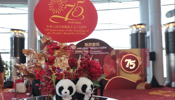 9月26日,香港南區的大街小巷處處充滿熊貓元素,迎風飄揚的彩旗和裝飾吸引眼球。當天上午中央送贈香港的兩隻大熊貓“安安”“可可”抵港,香港海洋公園屆時將有6只大熊貓常駐。海洋公園所處的香港南區早已做好迎接大熊貓的準備,熊貓元素糕點、熊貓主題巴士、熊貓彩旗等,大熊貓儼然成為“南區吉祥物”。(香港中通社記者 洪少葵攝)