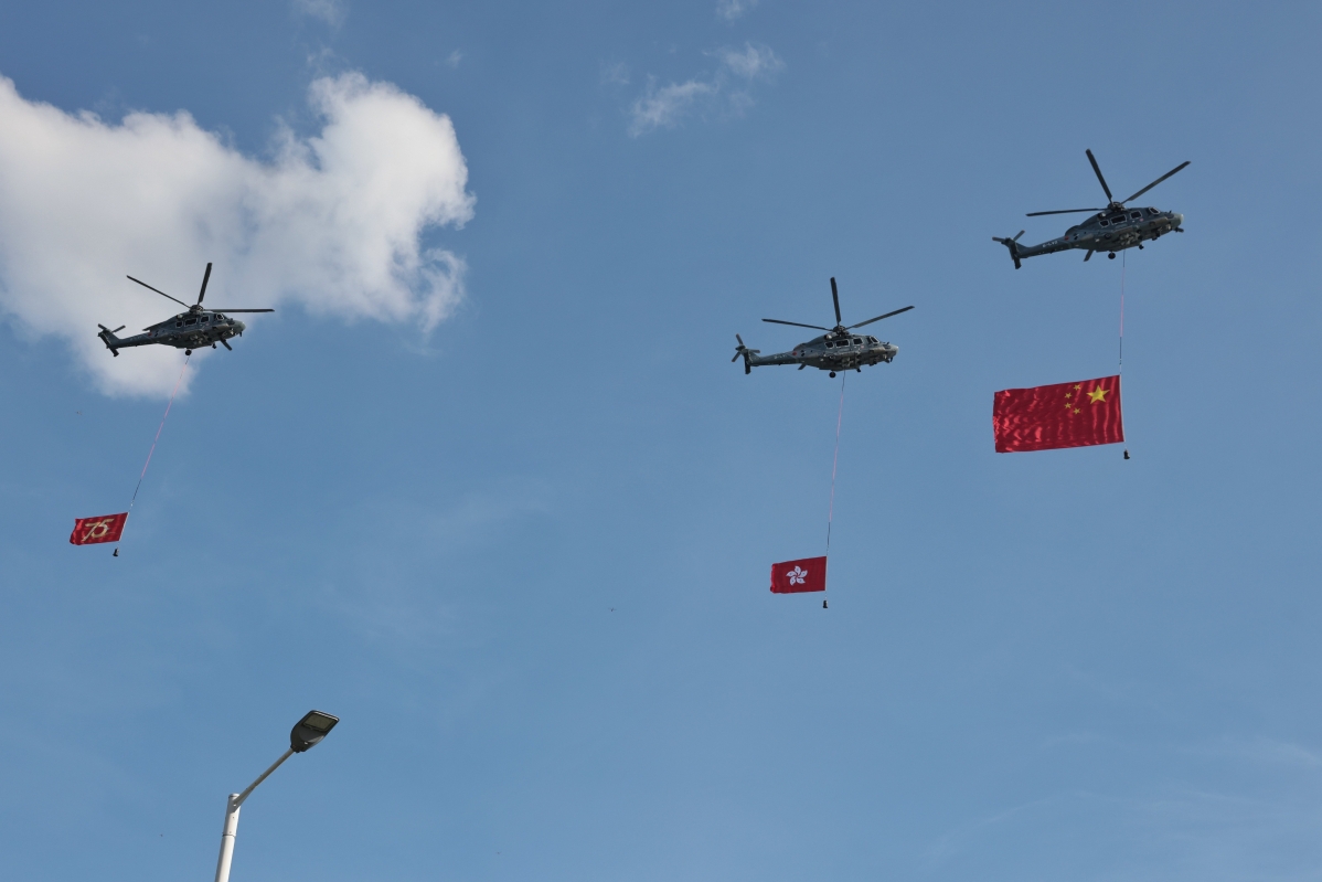 香港政府飛行服務隊飛越維港上空慶祝國慶75周年