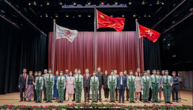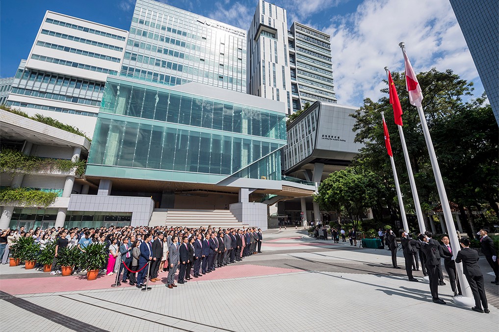 多名校董會成員,包括校董會司庫錢應安、成員陳建強、何志豪、黃德豪、丘煥法、潘柏麟、李光達、秘書唐寧,顧問委員會成員史立德、何毅雯、葉毓強,以及一眾大學管理層、教職員和學生代表等逾350名城大成員出席儀式,見證國旗、區旗及校旗徐徐升起,一同慶祝國慶日。是次儀式由城大學生組成的護旗隊負責升掛國旗、區旗及校旗。 科大於校園舉行升旗典禮,外交部駐香港特別行政區特派員公署政策研究室副主任包海斌參贊、科大副監督陳祖澤、校董會副主席楊佳錩、顧問委員會主席廖長城,以及其他大學高層管理人員作主禮嘉賓,並由香港輔助警察隊會操及升旗隊負責莊嚴而隆重的升旗儀式,隊員當中大部分為在讀科大學生及畢業生。