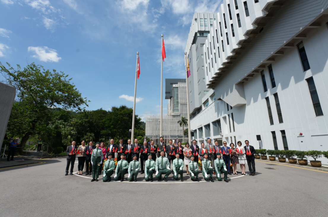 中大邀得大學校董會主席查逸超、校長段崇智、大學校董會成員、大學管理層、書院及學院代表,以及教職員、學生、校友和其他嘉賓等180多名嘉賓出席升旗儀式。 城大校董會主席黃嘉純聯同首席及常務副校長李振聲主持升旗儀式,慶祝中華人民共和國成立75周年。