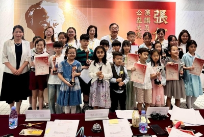 “語韻華章”朗誦大匯演在港舉行香港新聞網10月4日電 由“GAPSK語文推廣委員會”及“香港國際漢語教學協會”聯合舉辦的“語韻華章——吟誦、台詞誦、文學朗誦大匯演”,近日假沙田大會堂文娛廳舉行。當日出席活動的嘉賓有香港中華總商會榮譽會長莊成鑫、香港校董學會主席林建華、GAPSK首席學術顧問張丹、香港中聯辦教科部副處長顏為之、香港藝術發展局(文學)主席羅光萍、香港國際漢語教學協會會長趙秀梅;香港校董學會、香港教育行政學會、香港初等教育研究學會代表,以及30多所中小學師生和家長們蒞臨。 主禮嘉賓們共同為活動剪綵並發表熱情洋溢的致辭。GAPSK語文推廣委員會榮譽顧問莊成鑫在活動上表示:文化藝術是城市的靈魂,不同背景的學生和老師踴躍參與演出,也通過排練和努力演出獲得難得的學習經驗,盼望大家繼續支持年輕一代傳承薪火,推廣、發揚中華語言文化。