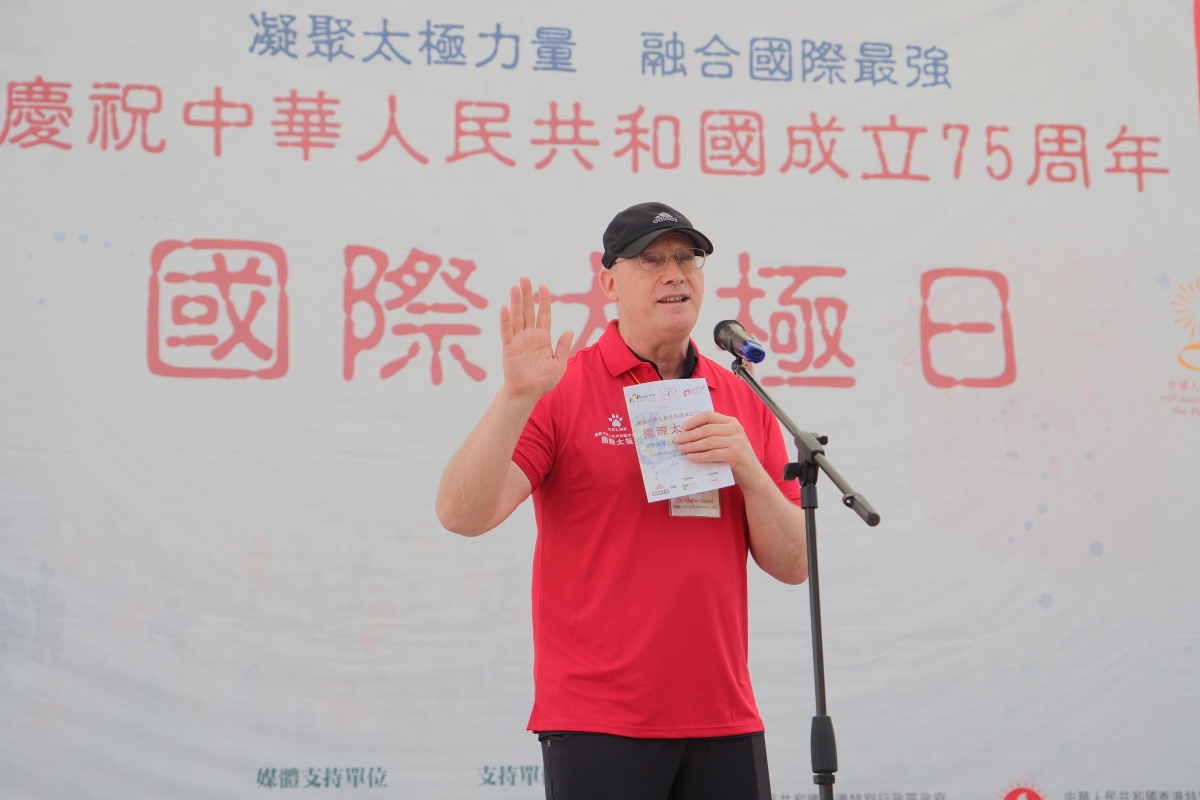 國際太極日籌委會總監貝鈞奇(右)、香港中聯辦九龍工作部副部長祝小東主持典禮 大會邀請到澳洲國際氣功太極學院巫朝暉主席、北美武苑余燊、美國脊醫Dr Bellin David、吳氏太極傳人單穎、徐鈿英、趙雷師傅等現場分享和展演太極拳魅力。商務及經濟發展局局長丘應樺致辭時表示,今年活動主題是“凝聚太極力量,融合國際最強”,令中華五千年文化瑰寶推展到全世界,相信活動可凝聚更多太極力量,促進國際間的文化交流及合作,同時讓更多人在國慶期間了解這項源遠流長、具有深厚文化底蘊及智慧的中國武術。