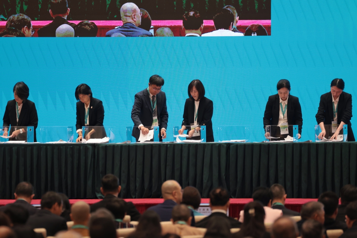 澳門特區第六任行政長官選舉委員會委員來到投票站,以無記名方式投票。