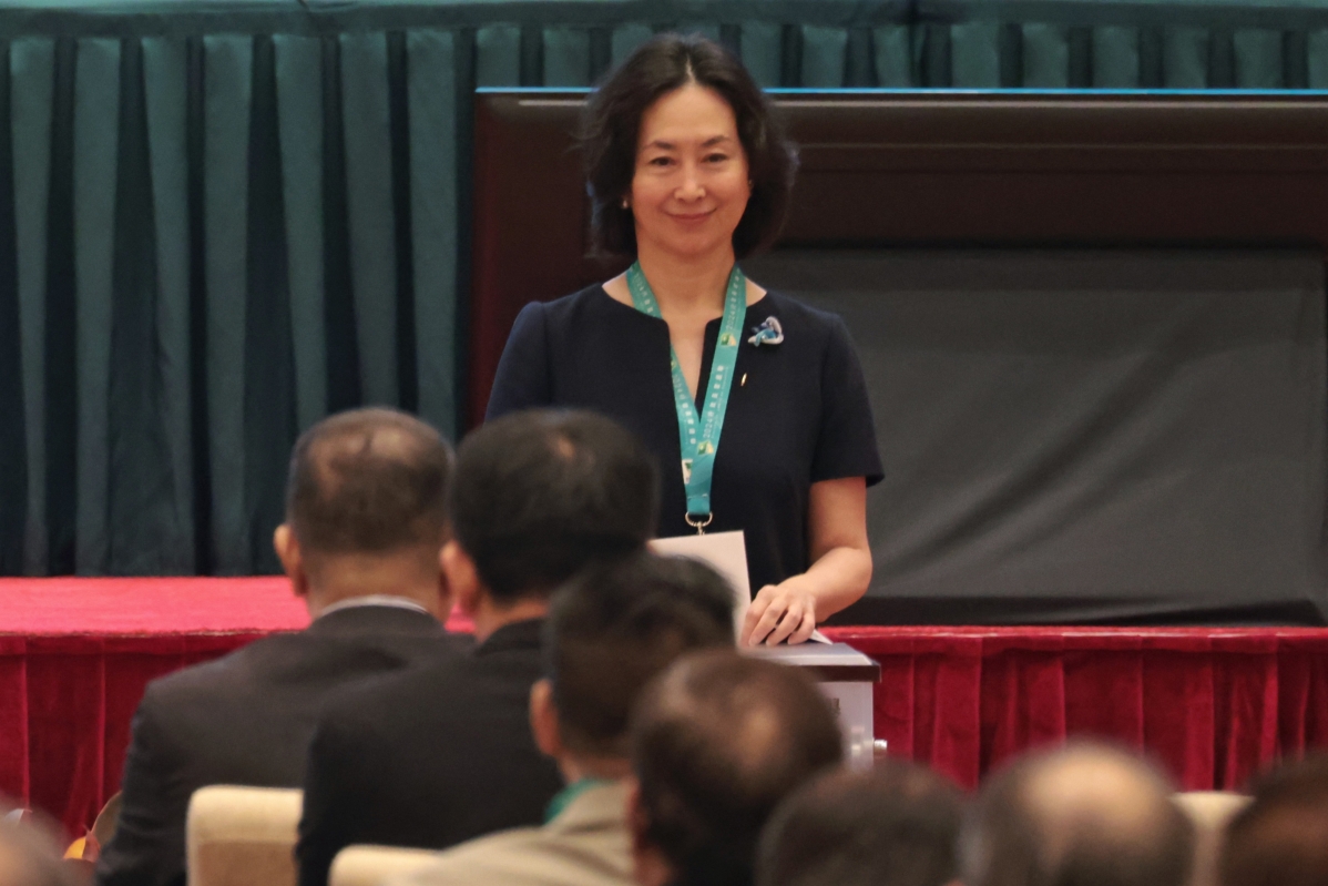 澳門特區第六任行政長官選舉委員會委員來到投票站,以無記名方式投票