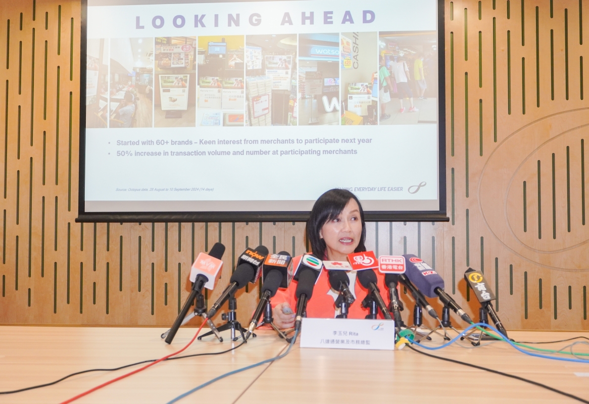 李玉兒。香港中通社圖片。 除訪港旅客外,“港人北上”的消費方式亦將八達通的適用範圍拓展到內地乃至海外。李玉兒表示,八達通銀聯QR碼的使用量較去年同期增長50%;今年推出的“全國通卡”,已售出超過6萬張,累計使用金額達4000萬港元。就內地方面而言,全國通卡使用量最高的城市依次是深圳、廣州、北京、上海等。八達通銀聯QR碼的使用範圍,亦覆蓋東南亞、日本、韓國等地。 八達通公司早在1997年推出八達通系統,如今已是全球服務範圍最廣的非接觸式智能卡支付系統之一。八達通亦於今年8月28日至9月10日舉辦“樂悠節”,近200萬“樂悠咭”(60歲以上香港居民使用的八達通)持有人參與消費,其中零食和餐飲消費總額達逾7億港元。 李玉兒展望,將“樂悠節”打造為一年一度的活動,為香港帶來歡樂和活力,從而進一步刺激香港零售經濟。(完) 【編輯:譚暢】