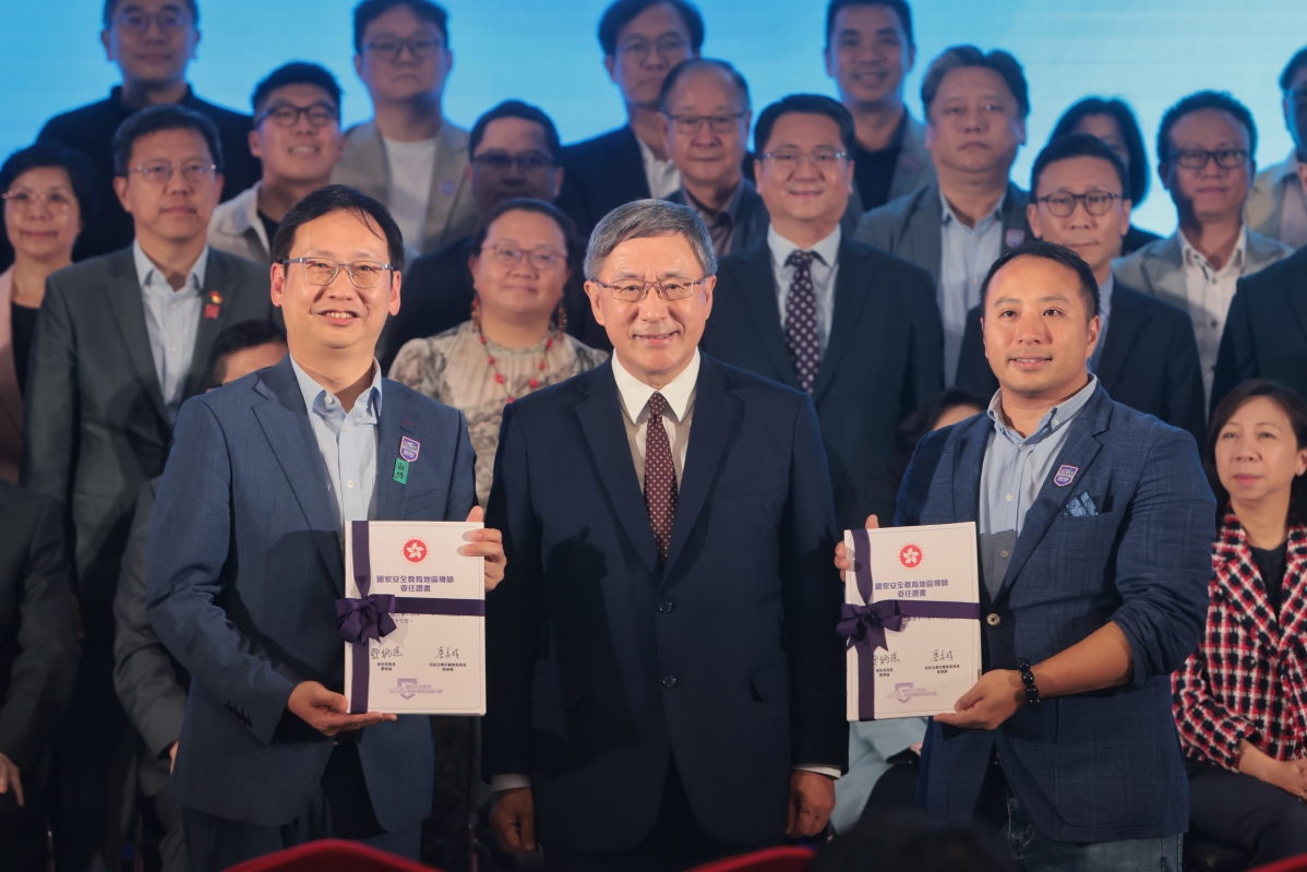 香港特區政府政務司副司長卓永興向國安教育地區導師代表頒發委任證書