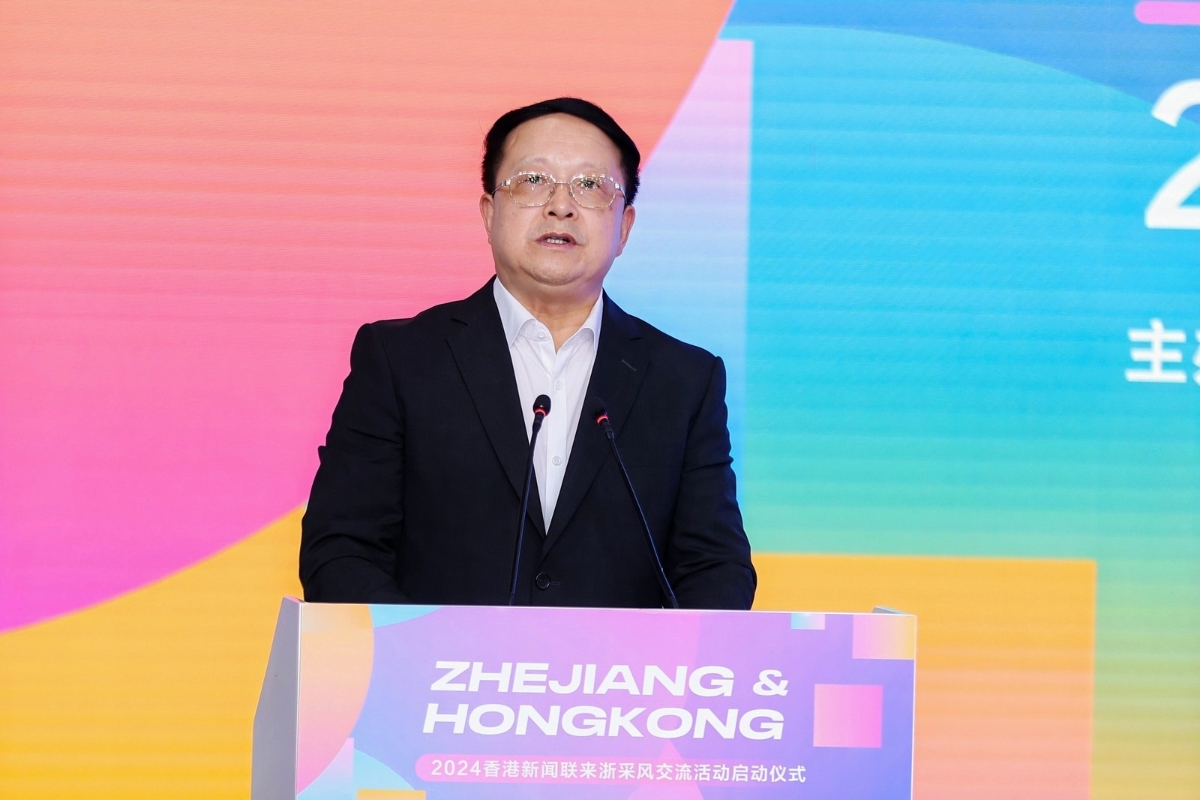 全國政協委員、香港新聞工作者聯會主席、香港大公文匯傳媒集團董事長李大宏致辭表示,今年3月,香港新聞聯與浙江省人民政府新聞辦公室簽訂了《國際傳播戰略合作框架協議》,半年多來,浙港兩地在新聞交流、文化傳播、人才培養等領域的合作卓有成效。此次率團來浙採風,正是雙方戰略合作的具體成果。他表示,推動香港新聞同業與內地新聞同業交流合作,是香港新聞聯的創會宗旨之一。