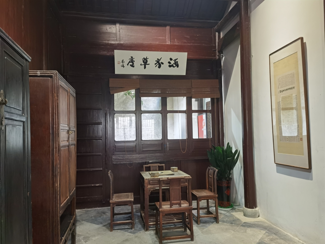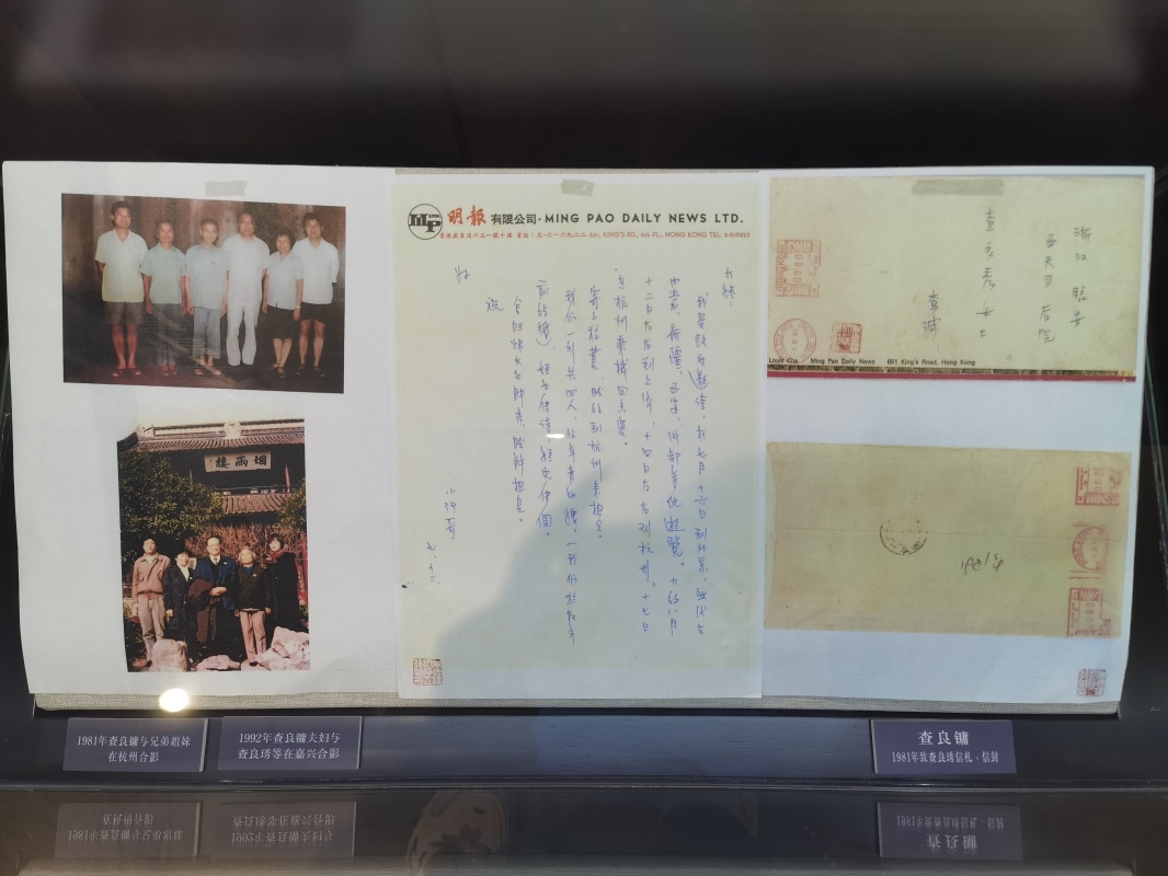 (香港中通社記者 譚暢攝) 今年3月,金庸故居在完成重新佈展及改造提升後向公眾全新開放。該宅院在金庸生活過的原址上重建而成,總面積逾1000平方米,綜合了金庸本人及家人的回憶,分為“居”和“展”兩部分,包括澹遠堂以及展廳等。 香港中通社記者站在故居外看去,這座白牆黑瓦的宅院頗具江南韻味,寥寥兩色,形制樸拙;右側題有“金庸故居”四字,是金庸好友、紅學家馮其庸所書。踏入門廳,左右上方亦有“文魁”及“進士”兩匾,再度體現出金庸所在的海寧查氏世家,是科舉出了“一門十進士”、底蘊深厚的書香門第。 故居的展廳內,則著重顯示出金庸的傳奇一生,包括其家族背景、少年乃至成名後的種種經歷,以及金庸迴鄉時的有關照片。其中許多展品都蒐集於香港,包括金庸的手稿、刊載其作品的原版報紙等,不少資料都是首次公開展示。