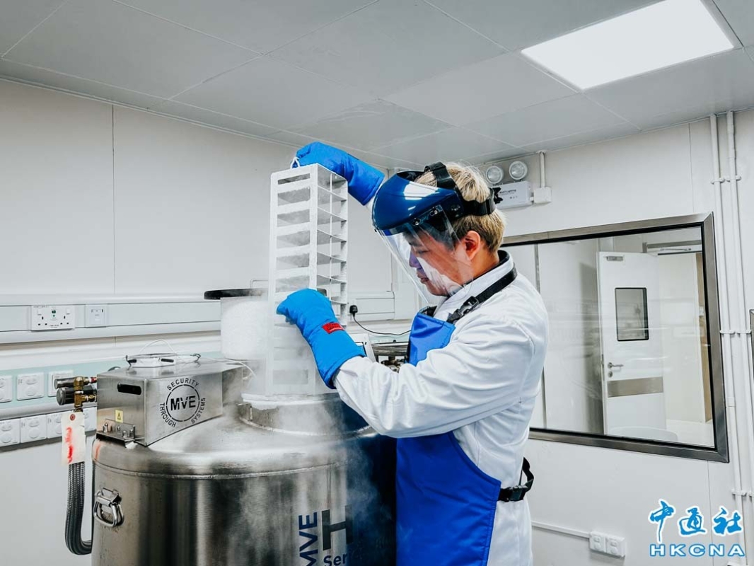 粵港澳大灣區國際臨床試驗所21日在河套區中央援港應急醫院開幕。試驗所將以大灣區超過8600萬人口為基礎,為海內外醫藥研發機構提供支援,開展符合國家及國際標準的跨境臨床試驗。試驗所面積近7000平方呎,設有兩個液氮凍存系統和11個超低溫冷凍儲存櫃的生物樣本庫,可儲存超過40萬份樣本,如組織、血液、細胞等。圖為液氮凍存系統。(香港中通社記者 徐嘉儀攝)