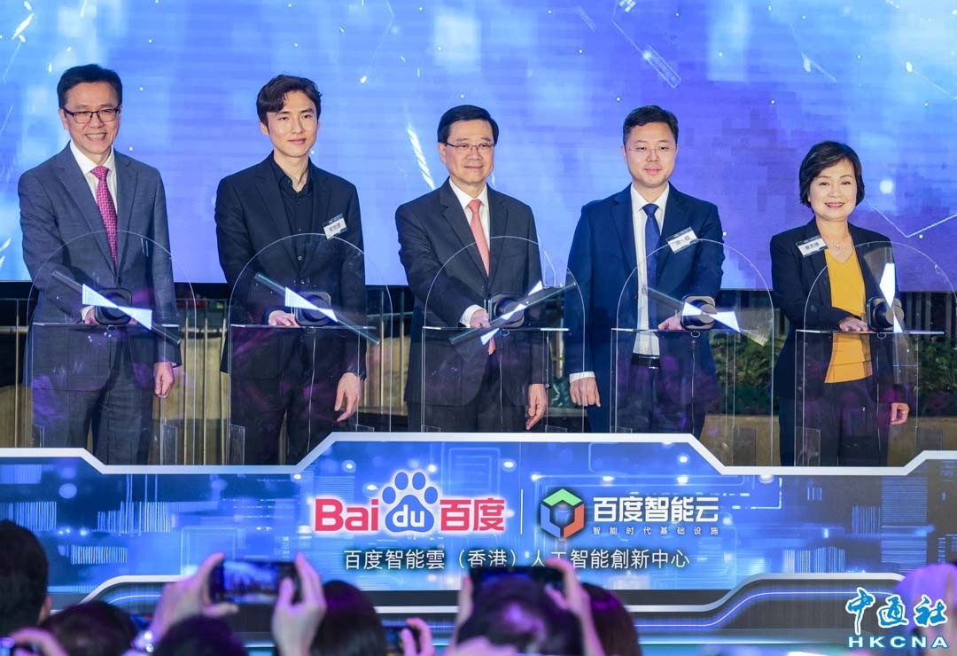 百度及香港千帆科技共同成立“香港人工智能科普培訓基地”,11月22日在香港數碼港商場舉行成立典禮及百度智能雲(香港)人工智能創新基地落成簽署儀式。基地致力於將人工智能應用的知識普及於香港學生之中,並在香港的創新科技生態系統中培育未來的科技人才。圖為香港人工智能科普培訓基地成立典禮。(香港中通社記者 曹文毓攝)