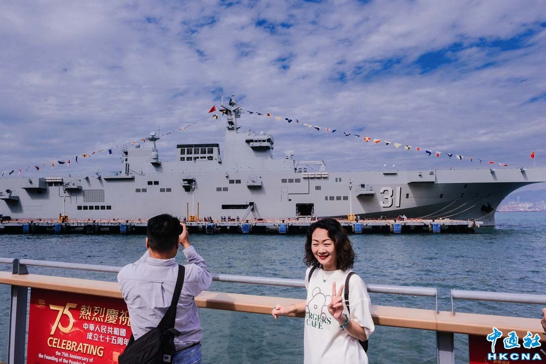 11月23日,香港大批市民到堅尼地城海濱拍照打卡海南艦。由中國海軍海南艦及長沙艦組成的編隊11月21日抵達香港,展開五日訪問。(香港中通社記者 許其皓攝)