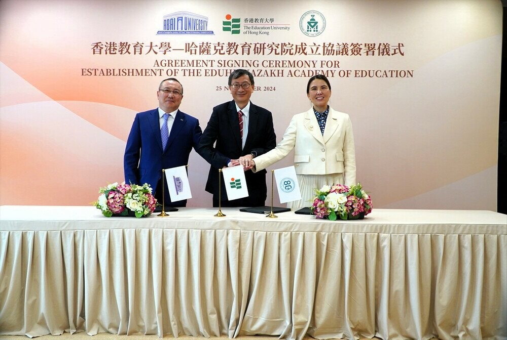 香港新聞網11月27日電 香港教育大學25日與哈薩克斯坦國家教育大學及哈薩克斯坦國立女子師範大學簽署合作協議,成立“香港教育大學—哈薩克教育研究院” (The EdUHK-Kazakh Academy of Education)(下稱教育研究院),為哈薩克斯坦的職前及在職教師提供高質量的國際化發展平台,提高當地教育工作者的專業水平, 同時推動教大與中亞地區沿線國家的知識轉移和分享。