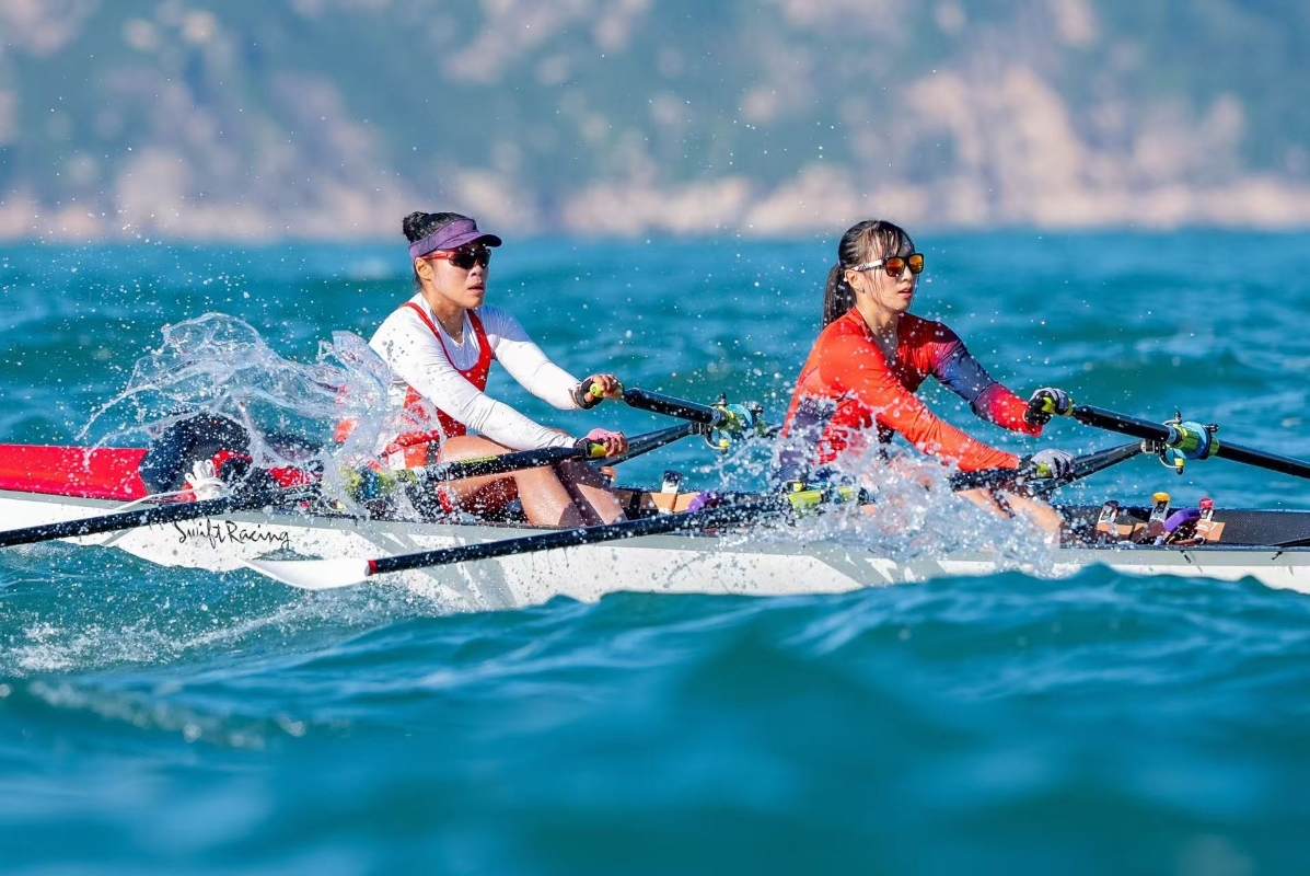 圖:香港遊艇會 隨著海岸賽艇將成為2028洛杉磯奧運會的項目,港將陳鈺文把握所有機會出戰與海岸賽艇相關的比賽。陳去年首次出戰“公開組單人雙槳艇”項目,在沒甚準備下,以4小時07分59秒完成賽事,屈居組別亞軍。今年吸取經驗,在賽前更熟讀賽道,即使全程45公里都在逆流情況下,他亦以大熱姿態全程放領,最終以破記錄時間3小時54分30秒完成賽事,稱霸“公開組單人雙槳艇”組別。 至於“五朝元老”許詠淇,她自2019年開始參與“海岸賽艇香港環島大賽”。今年夥拍星加坡代表Joan Poh 出戰“女子雙人雙槳艇”。比實初時,二人保持穩定的節奏,即使最後十數公里時許出現抽筋,仍無阻二人奮力前進。最後,她們以4小時02分11秒完成環島賽,在女雙組別奪封后。