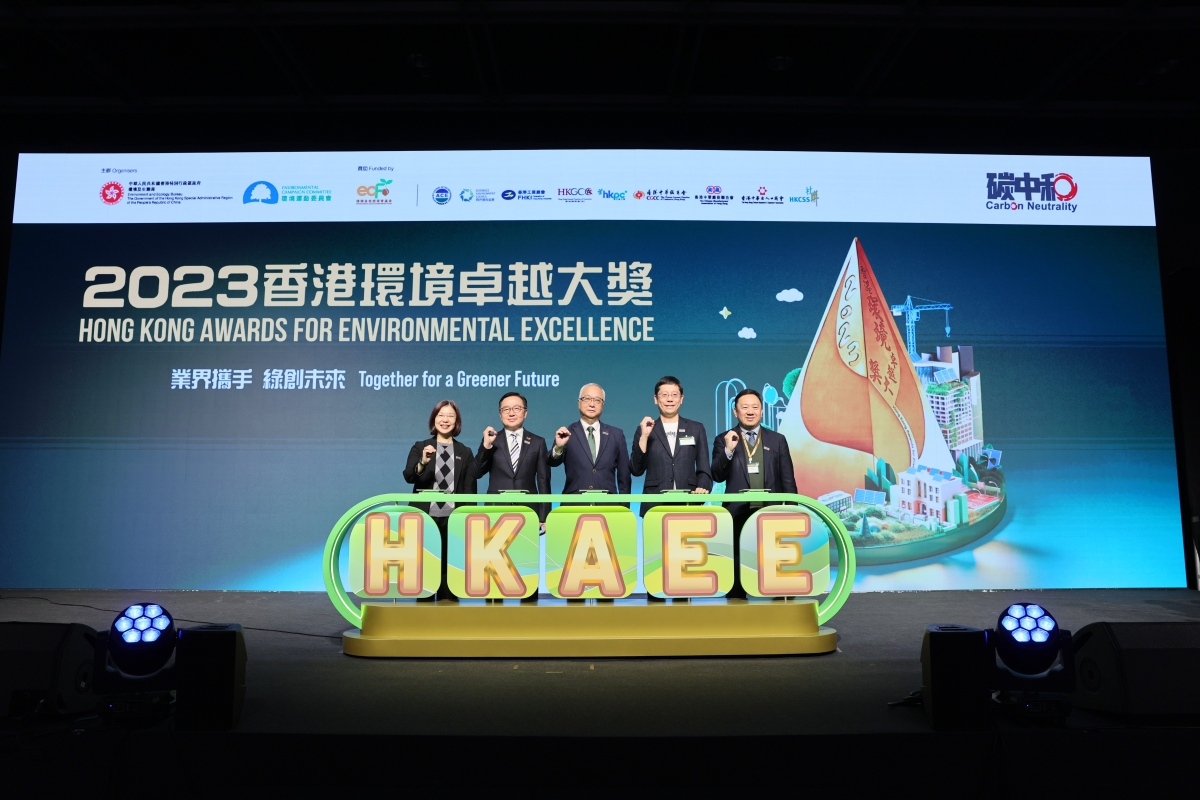 圖源:政府新聞處 下午的學校界別頒獎典禮,主禮嘉賓包括教育局副局長施俊輝博士、鄭錦鐘博士、黃傑龍教授、環運會教育工作小組召集人黃志強,以及環境及生態局氣候變化專員黃傳輝。典禮同場亦設有綠色校園資訊及體驗環節,透過互動資訊展覽、攤位遊戲和分享會,讓參加者向獲獎的綠色學校學習,了解並實踐低碳生活。 香港環境卓越大獎旨在嘉許於14個不同界別中具出色環保表現的機構,評審準則分為“環保領導”、“環保計劃與表現”及“夥伴協力合作”三個範疇。同日頒發的香港綠色創新大獎旨在鼓勵本地機構以嶄新的綠色方案應對環保挑戰,締造環境效益。評審標準包括“創新水平”、“環保成就”和“實用性及對社會的貢獻”三個範疇。各參賽機構經技術顧問作出兩輪評審後,由環運會及本港主要商會等不同界別的代表組成的最終評審委員會選出各金、銀、銅獎得主。 2023年度香港環境卓越大獎的參賽機構數目再創歷年新高,共有3584間,較2008年該獎項推出時增加逾八倍。本年度共有53間機構分別獲頒發金、銀、銅獎,以及158間機構獲頒發優異獎。2023年度香港綠色創新大獎共有78個參賽項目,約是2011年該獎項成立時的五倍。大會為嘉許管理層及員工在致力促進機構和社區環保的努力,並表揚其卓越表現和熱誠,亦選出一名“最傑出綠色菁英”、四名“傑出綠色菁英”及五名“綠色菁英”,另有38間機構成為“傑出香港環境卓越大獎推廣夥伴”。 香港環境卓越大獎由環境及自然保育基金贊助,並由環運會主辦、環境及生態局、環境諮詢委員會、商界環保協會、香港中華總商會、香港中華廠商聯合會、香港工業總會、香港中華出入口商會、香港社會服務聯會、香港總商會和香港生產力促進局合辦。 (完) 【編輯:譚暢】