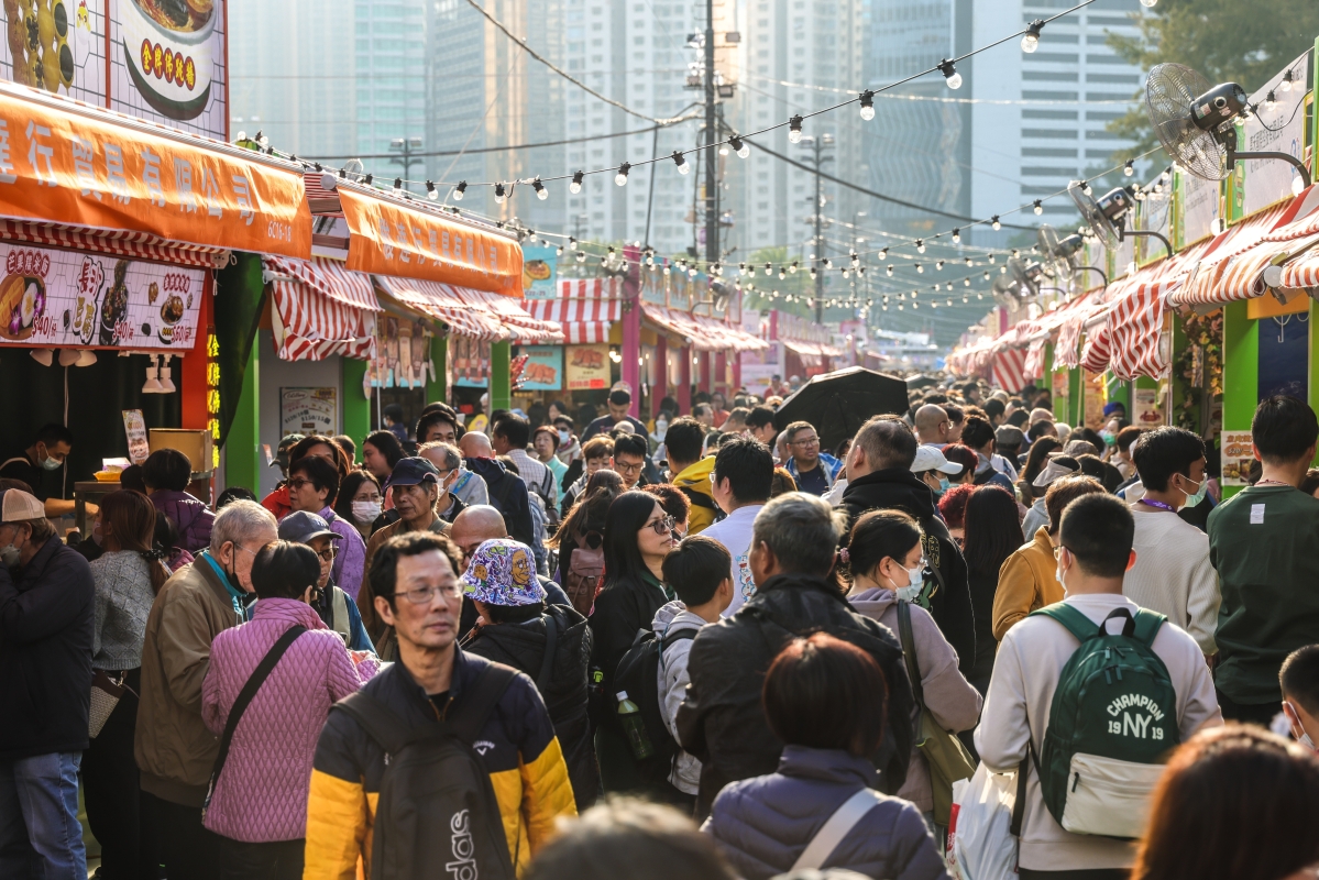 市民在美食攤位大快朵頤 【編輯:洪少葵】
