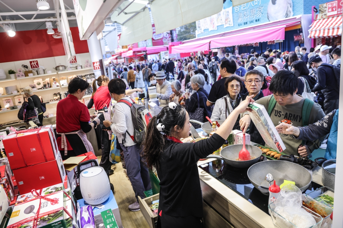 香港新聞網12月14日電( 記者 曹文毓)12月14日,由香港中華廠商聯合會主辦的“第58屆工展會”在銅鑼灣維多利亞公園登場。作為年度壓軸盛事,工展會的展期將延續至明年1月6日。今屆工展會設有11大主題展區,從食品飲料、糧油麵食、參茸海味、保健產品以至各式各樣的廚具用品及家電,以及環球美酒,滿足入場人士多元化的購物需要,现场人流眾多,不少商家打出“批發價”“全港包郵”等優惠政策吸引顧客。