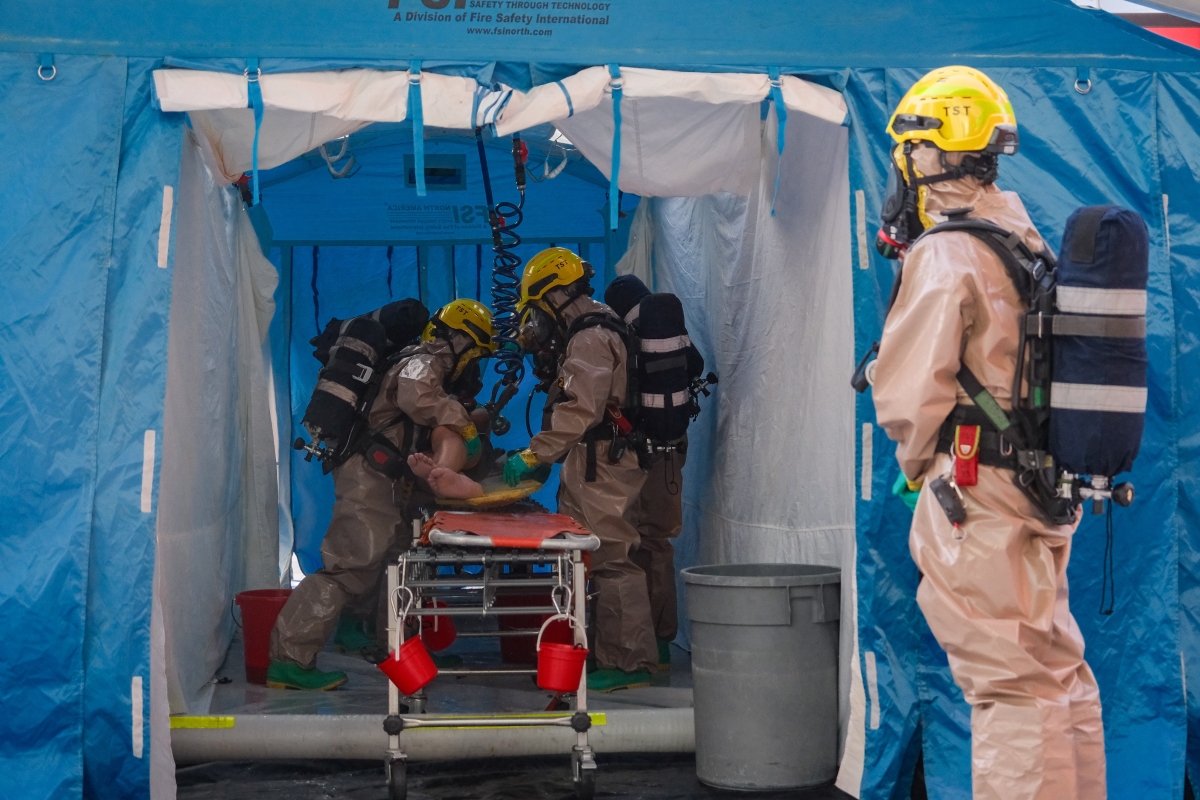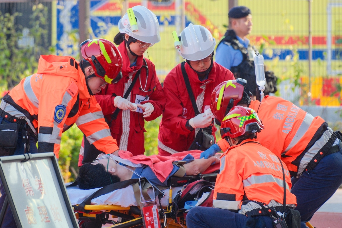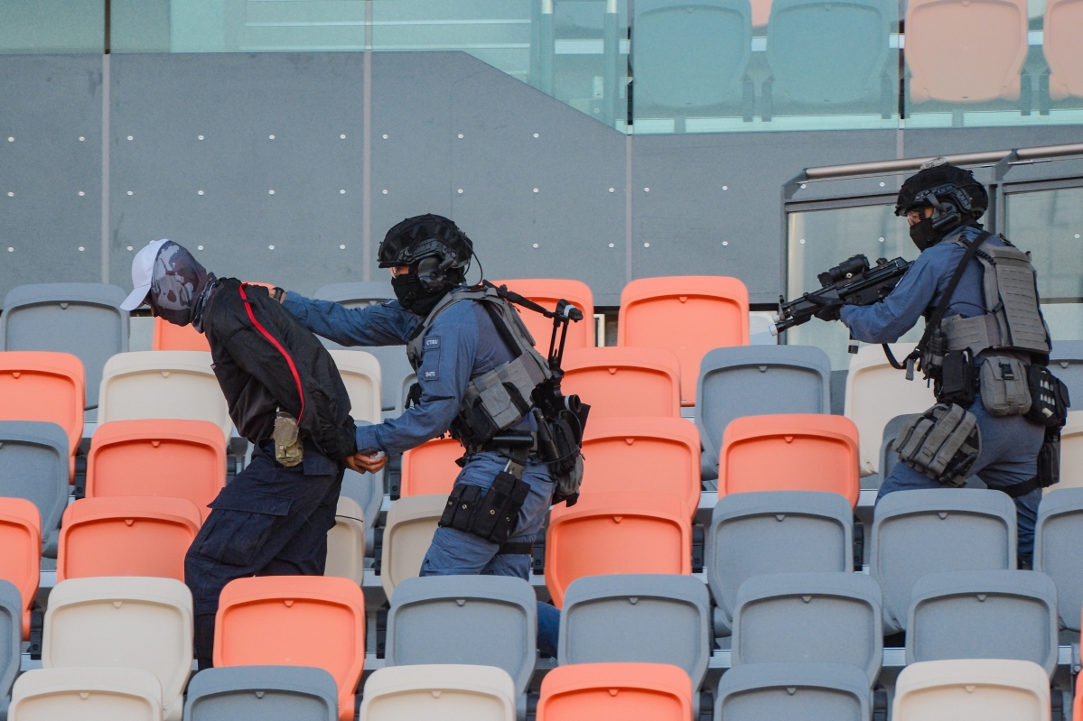 跨部門反恐專責組在香港啟德體育園啟德青年運動場進行代號“慧光”的跨部門反恐演習
