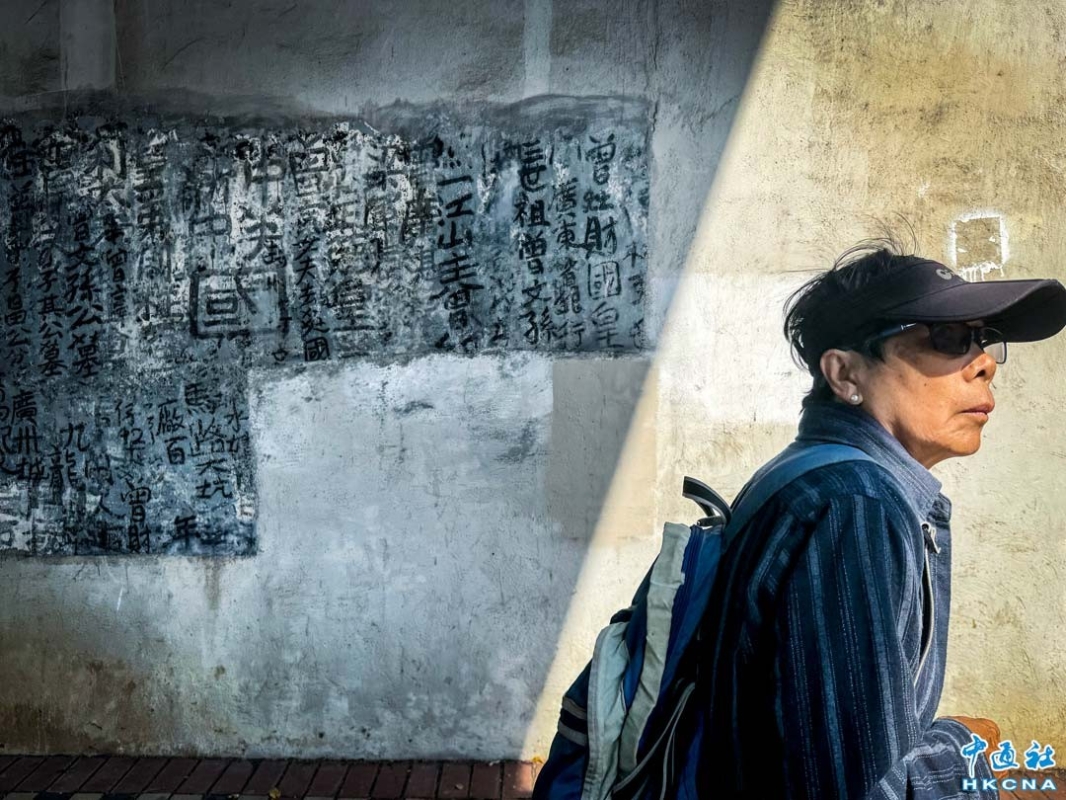 香港旺角界限街花墟球場附近一個港鐵鐵路橋躉下的牆身,歷經風霜,油漆剝落,逐漸浮現昔日"九龍皇帝"於不同時期留下的三處墨蹟。港鐵決定將其保留並塗上保護物料,向公眾展示。曾灶財自詡"九龍皇帝",五十年代開始在街頭寫字,宣示自己對九龍的“主權”。他堅持不懈地在街頭塗鴉逾半世紀,筆跡深入民心,成為香港人的共同回憶,更啓發不少電影、文化及時裝界人仕仿效向他致意。(香港中通社記者 徐文峰攝)