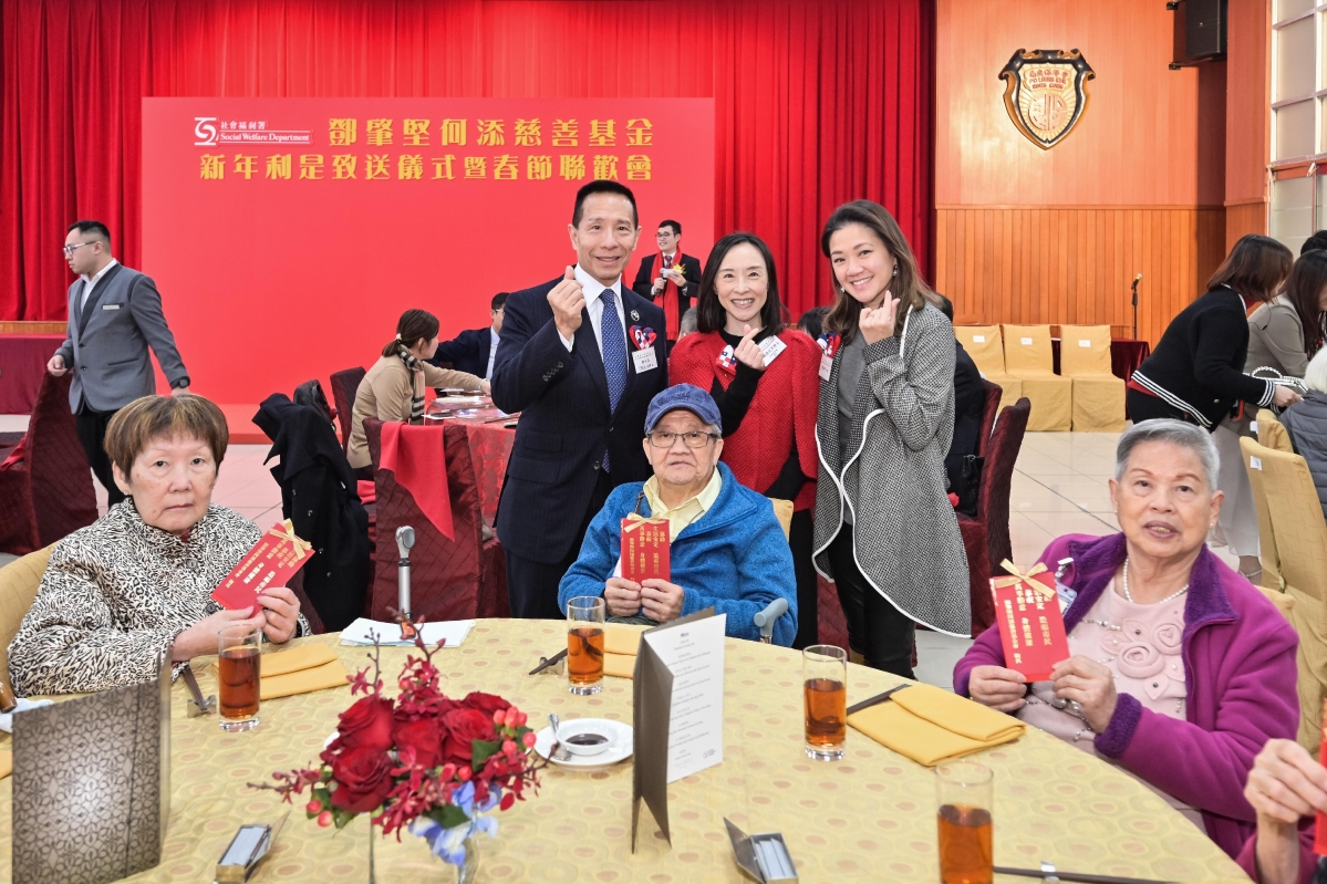 香港新聞網1月7日電 香港社會福利署(社署)7日與鄧肇堅何添慈善基金管理委員會(鄧何基金)合辦春節聯歡會,與長者歡聚一堂,喜迎新春。 鄧何基金為約40名參加聯歡會的“老友記”安排精彩的表演節目,並向他們致送利是及提供豐盛而健康的午宴。社署署長李佩詩、基金顧問鄧日燊和何厚浠,以及基金管理委員會的委員在活動上祝願長者蛇年身心康泰、平安健康。