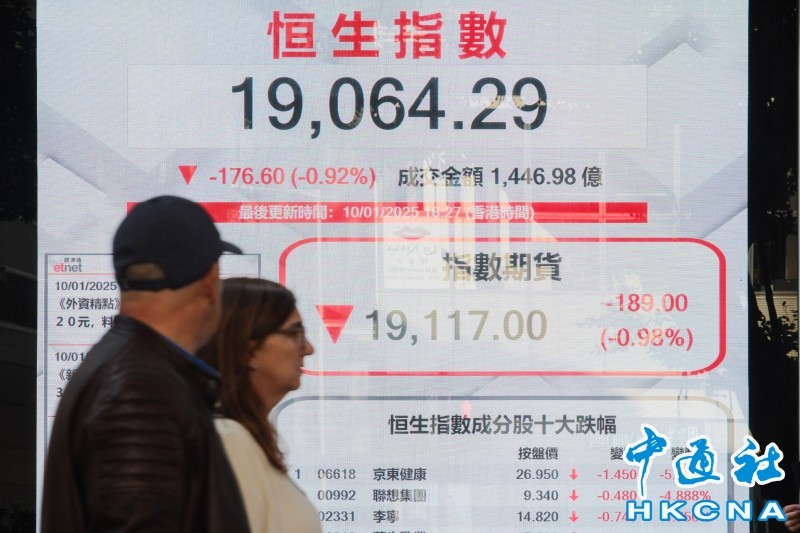 香港恒生指數跌176.60點,報19064.29點。香港中通社圖片 當天,恒指高開87點,報19328點,早段曾升129點,高見19370點,之後回落,中午跌85點;內地A股午後跌勢轉急,恒指曾跌204點,低見19036點,尾市跌幅略為收窄。 國企指數報6898點,跌80點;恆生科技指數報4260點,跌50點。 美團跌2.9%,百度跌1.4%,攜程跌1.2%,騰訊跌1%,匯豐升1.1%,網易升1.3%。京東健康跌5.1%,為表現最差藍籌。紫金礦業升3.1%,為表現最好藍籌。 香港股票分析師協會副主席郭思治對中通社記者分析,大市經過連續4天反覆回落後,在靠近月內低位附近拉鋸,觀望氣氛主導下,升至19370點漸受規限,交投偏疏。 從技術上看,郭思治表示,恒指目前反覆於50天線(約19867點)、20天線(約19786點)、10天線(約19639點)及100天線(約19505點)之下,仍身處反覆試低弱態中,低位暫為本月8日低位19111點及去年11月26日低位19054點。未能成功重越10天、20天及50天線前,大市不算真正回穩。(完) 【編輯:林曉惠】