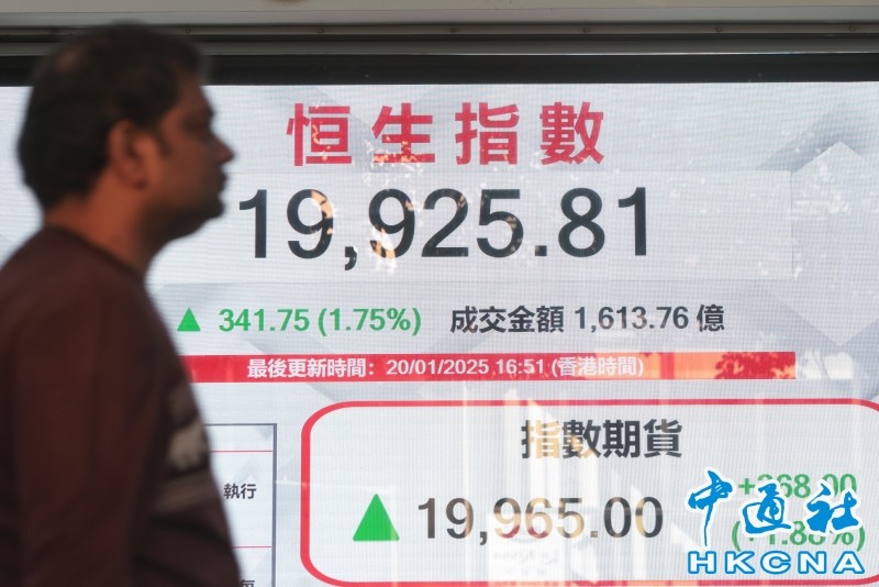 香港恒生指數漲341.75點,報19925.81點。香港中通社圖片 當日,恒指高開220點報19804點,升幅曾略縮至202點低見19786點,之後買盤持續湧入,午後升穿上午高位,最多升509點高見20093點,尾市回順。 國企指數升126點或1.8%,報7235點;科技指數揚116點或2.6%,報4595點。 藍籌股整體向好。港交所走高2.1%,中海油挫2.7%,為表現最差藍籌。科技股表現突出。美團飆5.2%、阿里巴巴升4.7%、百度升2.7%。京東健康全日彈升5%;京東炒高7.3%,為表現最好藍籌。 第一上海首席策略分析師葉尚志對中通社記者分析,港股保持穩好並出現伸延升勢,市場憧憬中美關係有望改善緩和,加上互聯網權重股集體上拉領漲,ATM合共為恒指帶來180點升幅,相信都是加強港股整體試高的因素。 他提到,恒指走了一波五連漲,大市成交量亦見增加配合。由於市場重燃對美聯儲今年進一步減息的憧憬預期,加上內地去年全年GDP錄得5%目標增長,令港股得以扭轉短期弱勢,盤面逐步恢復穩定性也是港股得以進一步向上彈升的基礎。(完) 【編輯:林曉惠】