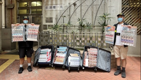 期間,海關人員除於屋邨範圍內巡查外,亦有擺設攤位向居民派發宣傳單張及講解反私煙訊息,並鼓勵他們向海關舉報懷疑買賣私煙活動。 海關呼籲年輕人,特別是學生,切勿以身試法買賣私煙或派發私煙傳單,以免留下案底影響前途。 海關會繼續根據風險評估、情報分析和採取從源頭堵截的策略,加強打擊私煙活動。如發現有公屋單位涉及私煙罪行,海關會在法庭審結案件後通知房屋署跟進。 海關強調,買賣私煙同屬違法。根據《應課稅品條例》,任何人若處理、管有、售賣或購買私煙即屬違法,一經定罪,最高可被判罰款一百萬元及監禁兩年。 根據《吸煙(公眾衞生)條例》(第371章),任何人不得分發任何形式的吸煙產品廣告(包括任何傳單),違例者最高可被罰款港幣五萬元。(完) 【編輯:張明臻】