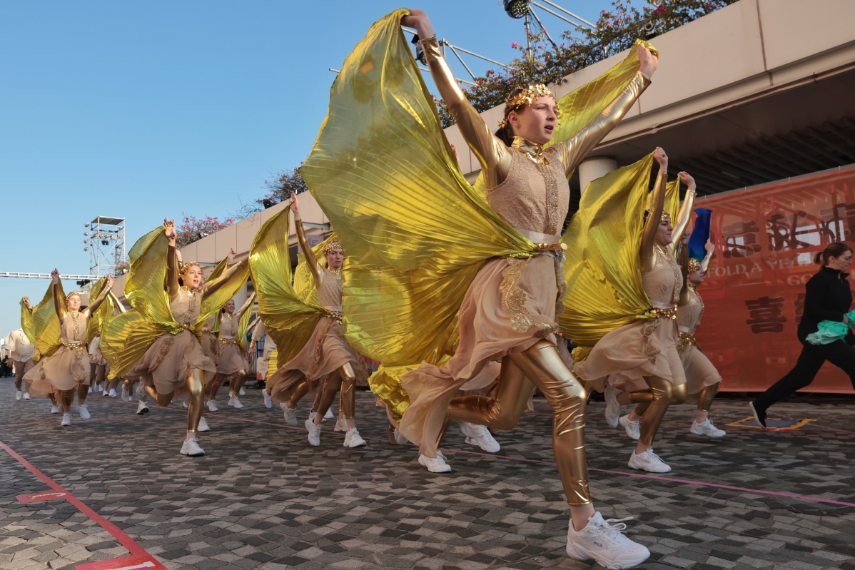 新春花車巡遊進行彩排多支國際表演隊伍獻技