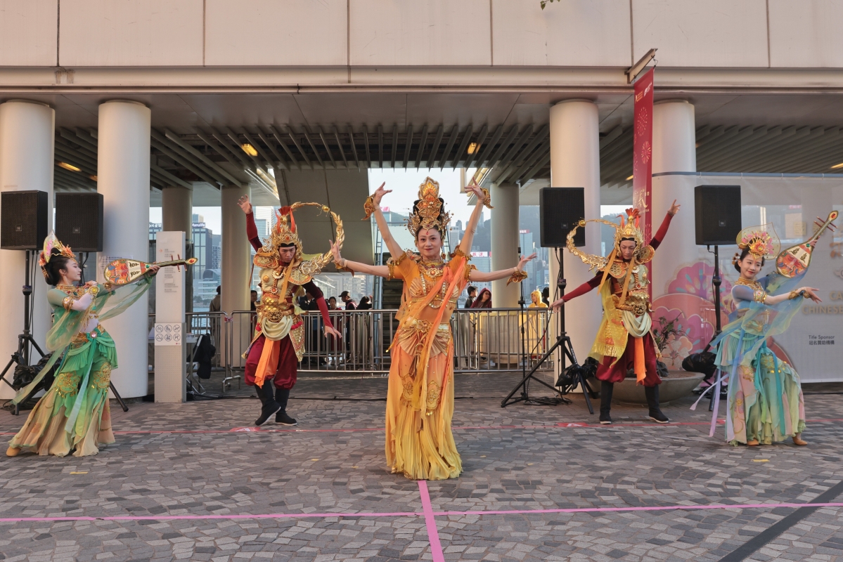 來自印尼的表演隊伍在香港尖沙咀綵排,準備明天(29日)舉辦的“國泰新春國際匯演之夜”