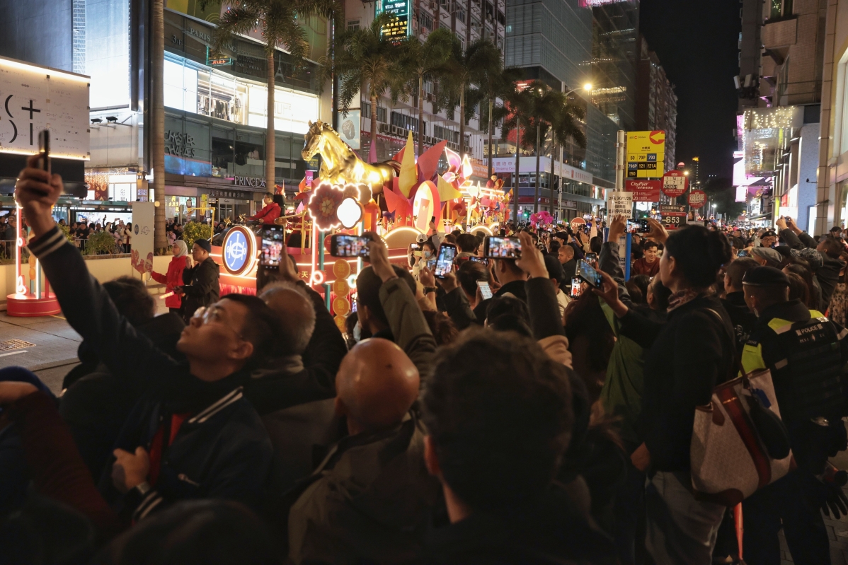 大批市民和遊客在尖沙咀欣賞花車巡游 【編輯:洪少葵】