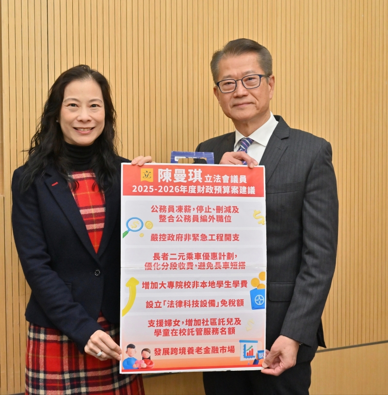 香港新聞網2月5日電 香港立法會議員陳曼琪4日向特區政府財政司司長陳茂波,提出2025-2026年度財政預算案建議共21項。