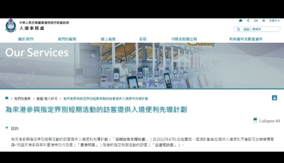 在計劃下,短期來港參與仲裁程序,並持有由指定仲裁及爭議解決機構或場地提供者發出的“證明書”的合資格人士,可以訪客身份來港參與仲裁程序,毋須取得工作簽證。計劃隨後會改名為“為來港參與仲裁程序的人士提供入境便利計劃”,成為常設的入境便利措施。