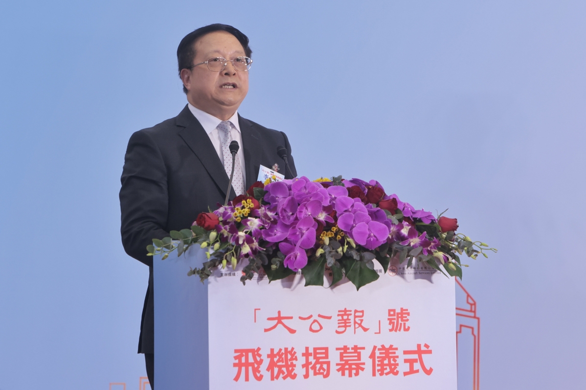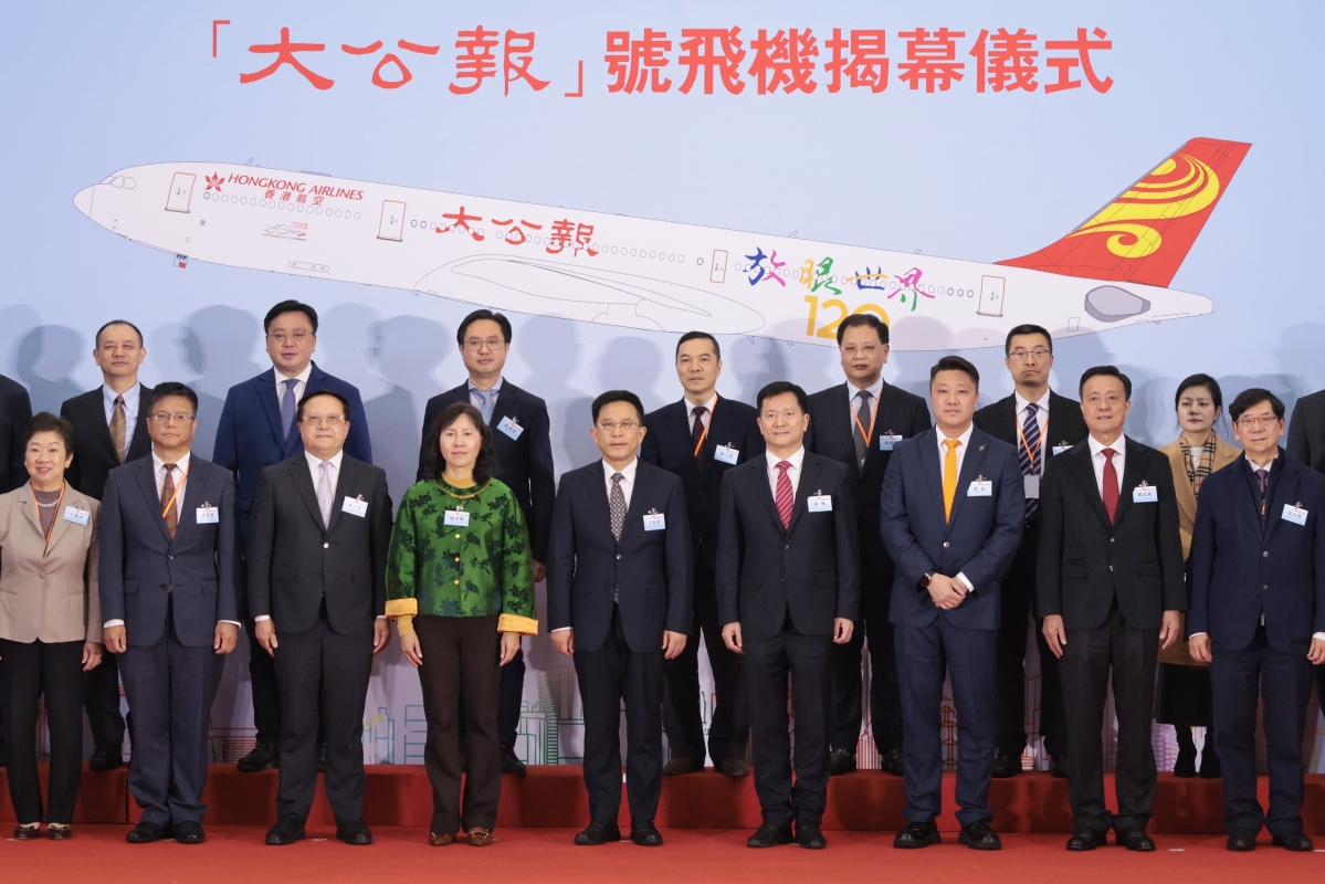 香港新聞網2月14日電(記者  謝光磊 )  2月14日,“大公報”號飛機在香港國際機場揭幕。今年是抗日戰爭勝利80周年。香港大公文匯傳媒集團與香港航空攜手,共同打造“大公報”號飛機,既是向中國首架“大公報”號滑翔機的抗日義舉致敬,也是香港愛國主義教育的生動體現。