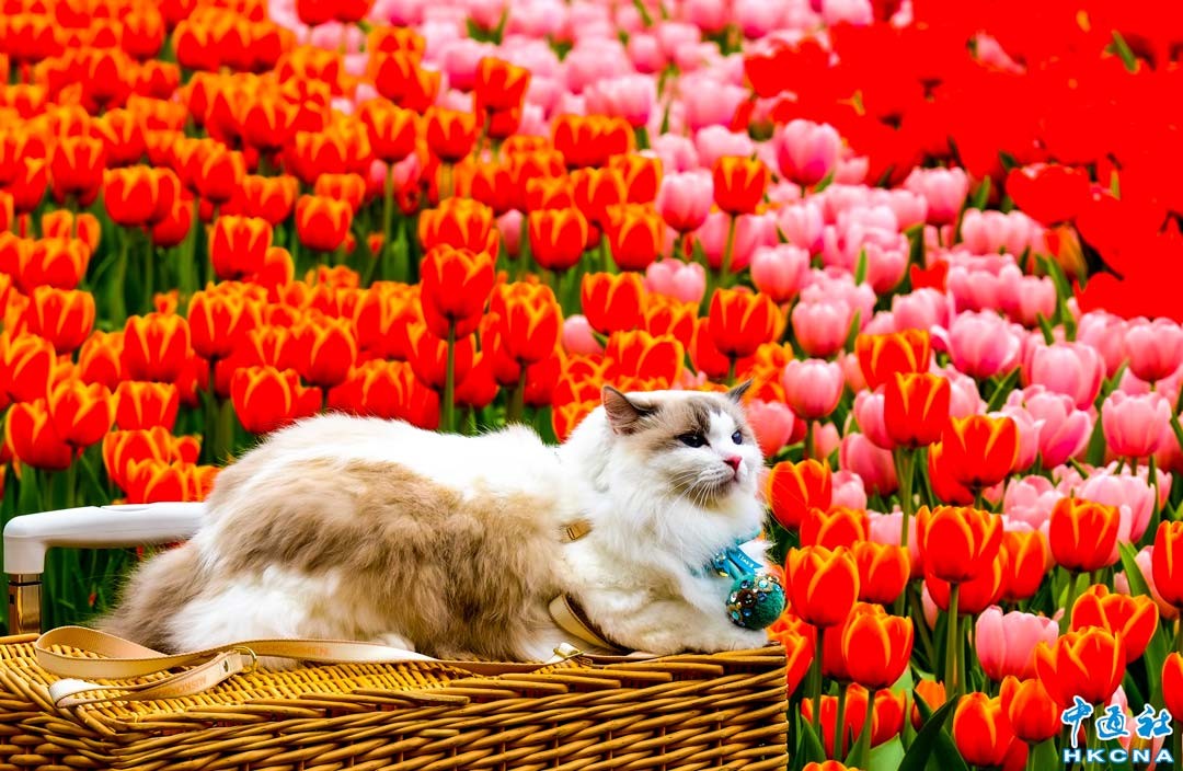 2025台北市士林園藝所鬱金香展以“愛的遇藝”為主題,選用超過13萬株、30個不同品種的鬱金香打造成8大展區,把現場妝點成浪漫的愛情殿堂,營造出一片令人陶醉的繽紛花海。鬱金香代表“愛情和希望”,配合西洋情人節到來,民眾徜徉在這“愛情花園”中,幸福浪漫。 香港中通社圖片