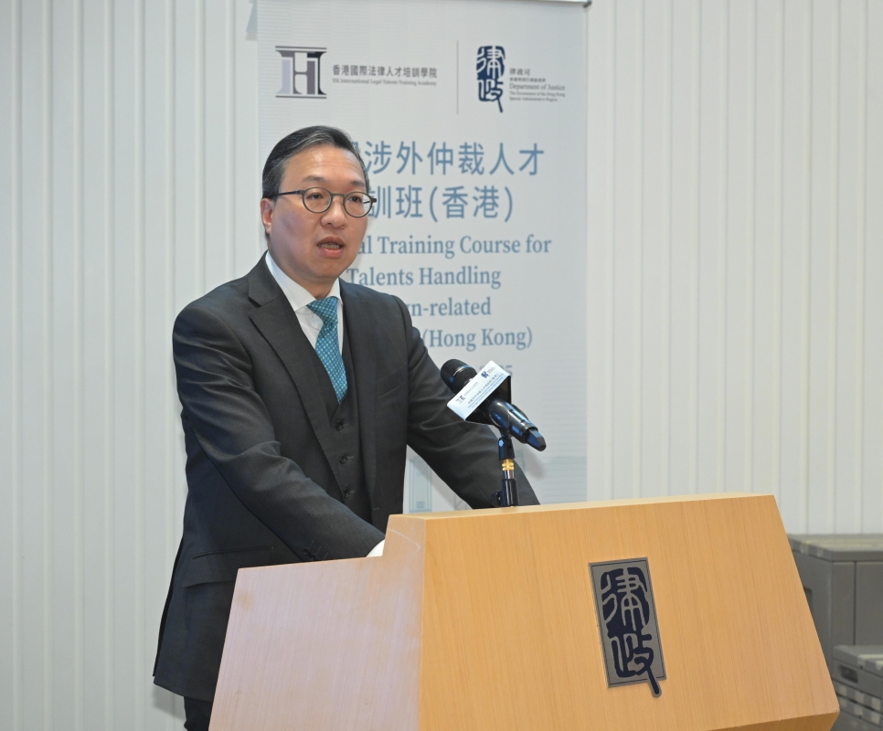 圖示律政司司長林定國資深大律師在開班儀式致辭。圖片來源:政府新聞處 培訓班為期兩周,以英語授課,全面介紹香港仲裁的制度和實踐運行,並進行內地及國際框架的比較分析。學員還將與仲裁機構、法律專業團體交流,並參觀律師事務所、國際律師事務所及法院,與香港經驗豐富的法律專業人士直接對話,增加對香港法律的了解,加強兩地在跨境爭議解決方面的理解與合作。 當天,特區政府律政司司長林定國在社交平台分享,隨著“一帶一路”倡議穩步發展,商事貿易繁多,涉外人才需求熱烈,律政司國際人才培訓學院著力培養具備全球視野、深諳國際規則、並能提供專業服務的涉外仲裁人才,全力配合國家推進涉外法治建設的戰略部署。期望課程可促進香港與內地仲裁制度的交流,加深參加者對香港仲裁和爭議解決的了解,以在未來實踐所學。(完) 【編輯:林曉惠】