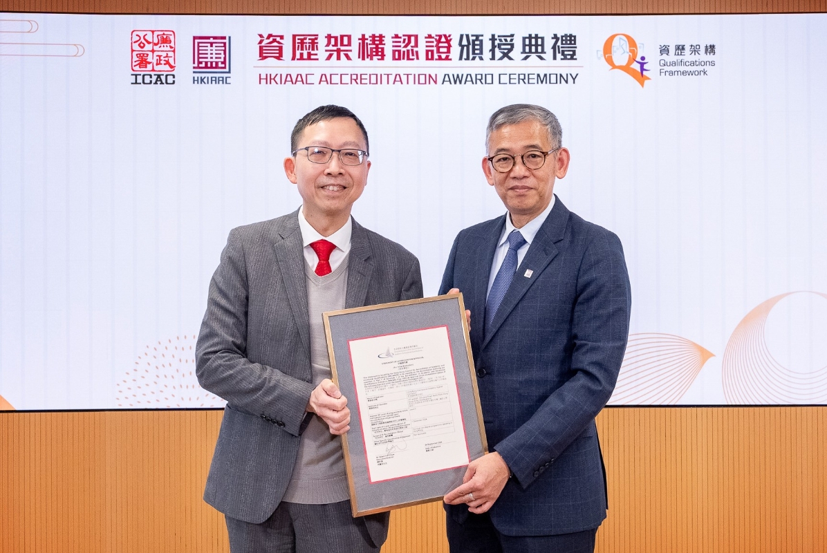 圖源:廉政公署 廉政專員胡英明在日前舉行的廉政學院資歷架構認證頒授典禮表示,廉政學院於成立首年已獲得資歷架構第五級的認可,意義非凡且得來不易。 香港學術及職業資歷評審局總幹事周慶邦致辭時則指出,廉政學院及廉署“反貪專業文憑”入職課程首次評審已獲取資歷架構第五級別認證的“金漆招牌”,在職業及專業範疇的評審中史無前例,是廉政學院的成就里程碑。