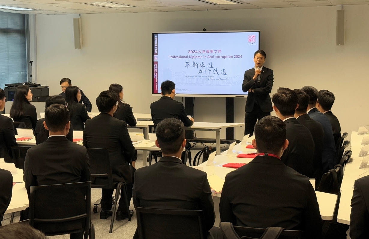 圖源:廉政公署 出席頒授典禮的亦包括廉政學院兩位校外顧問—香港城市大學人文社會科學院院長何達基教授,以及香港大學法律學院副院長(研究)兼科研誠信教育及推廣副主任楊艾文教授。兩位學者自廉政學院籌備成立至今,一直就其專業發展及培訓標準提供了不少寶貴意見。廉政學院總監柳智浩表示,廉政學院獲取認證後,課程學員更有系統及全面地獲得知識和技能培訓,對內有助廉署人員應對日益複雜的反貪工作,對外則協助廉署向國際社會宣揚香港的成功反貪經驗,進一步促進全球廉潔發展。認證於2024年12月1日正式生效,廉政學院並於同月展開首屆獲資歷架構認可的廉署“反貪專業文憑」入職課程,來自執行處、防止貪污處及社區關係處約50名新入職的廉署人員,正進行為期20星期的課程,內容涵蓋本地、國家及海外的反貪法制,以及各項有關執法、防貪和教育的知識及技能,旨在培訓學員能有效並專業地打擊貪污。 (完) 【編輯:梁嘉軒】